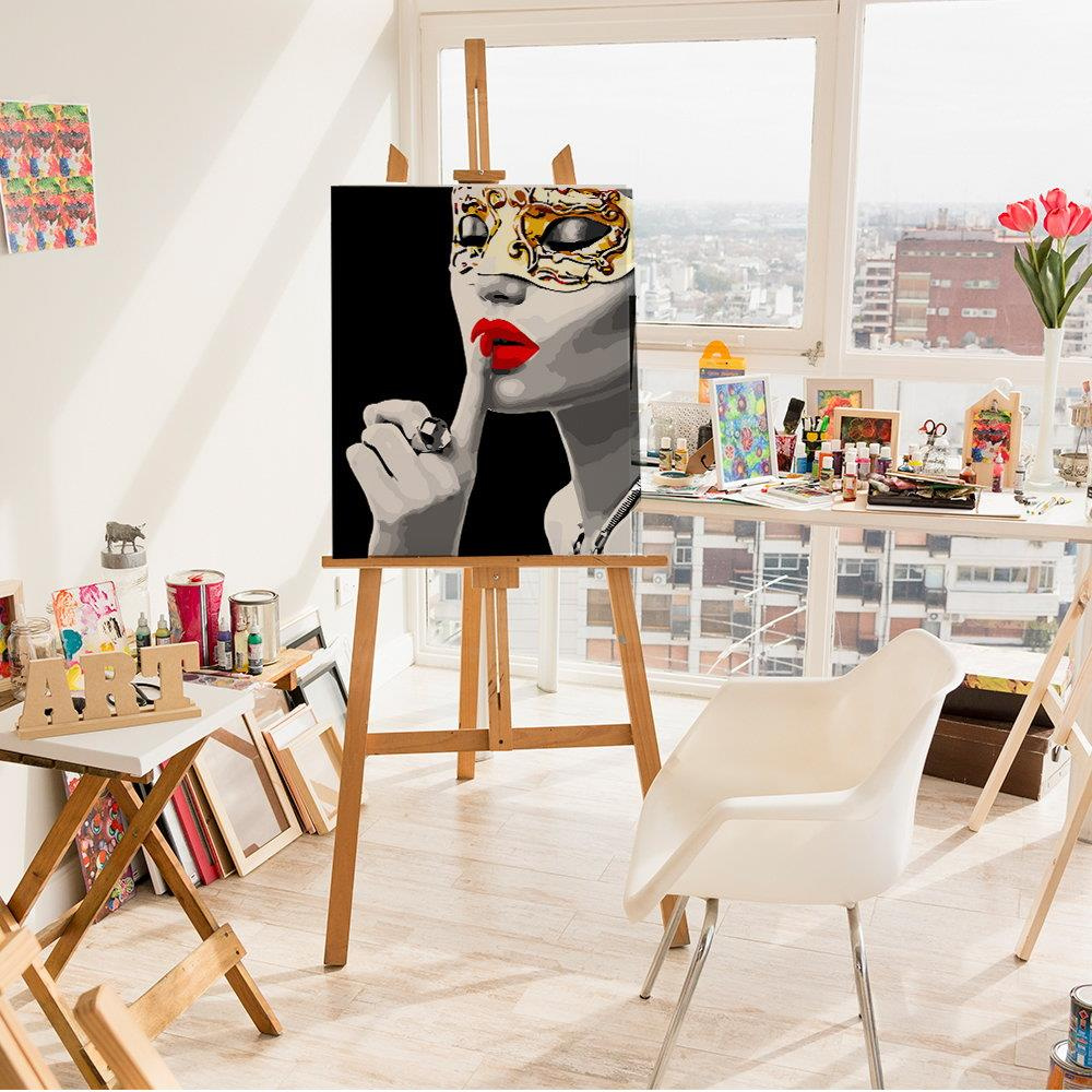 Malen-nach-Zahlen-Set Maskiertes Mädchen 50x40 cm auf Holzkeilrahmen