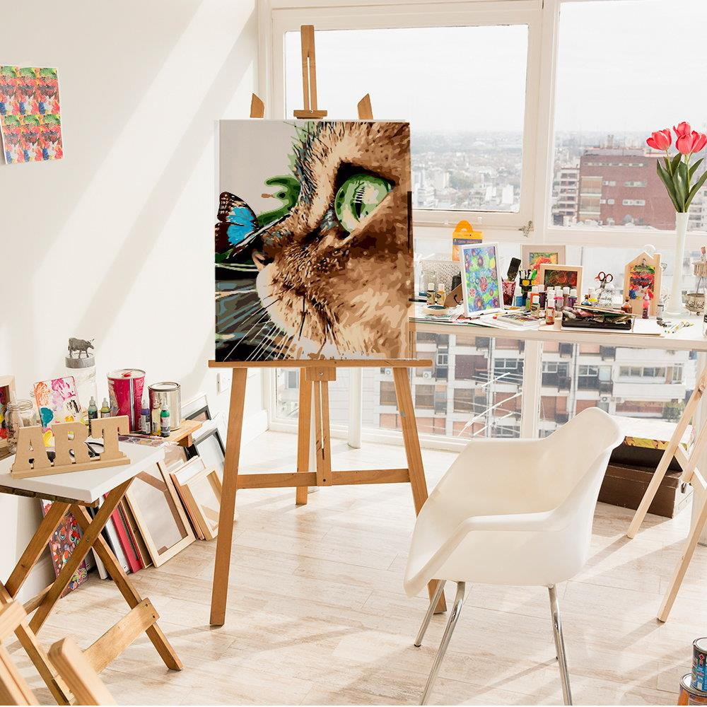 Malen-nach-Zahlen-Set Katze und Schmetterling 50x40 cm auf Holzkeilrahmen