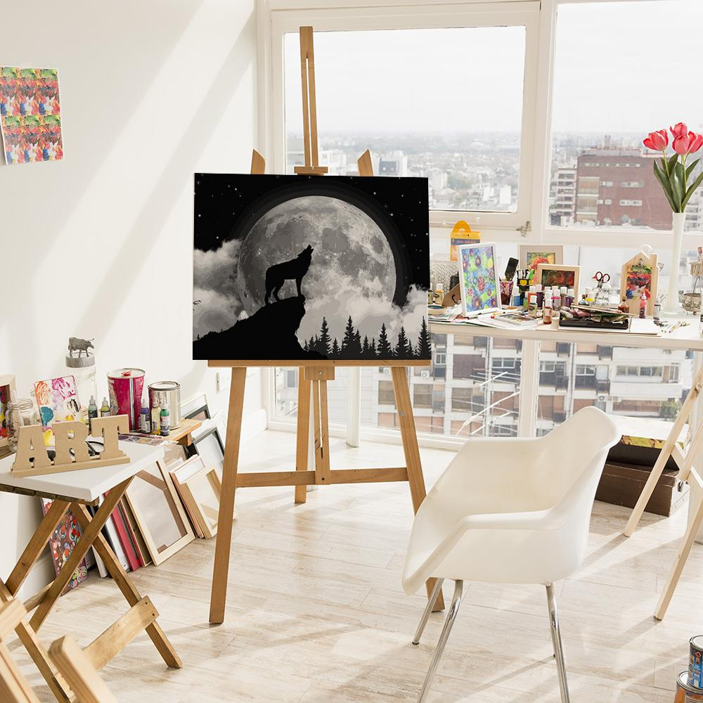 Malen nach Zahlen auf Keilrahmen – Wolf und Mond 50x40 cm Bild zum Ausmalen nach Zahlen