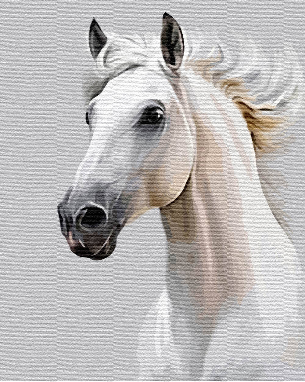 Malen nach Zahlen auf Keilrahmen – Weißes Pferd 50x40 cm Bild zum Ausmalen nach Zahlen