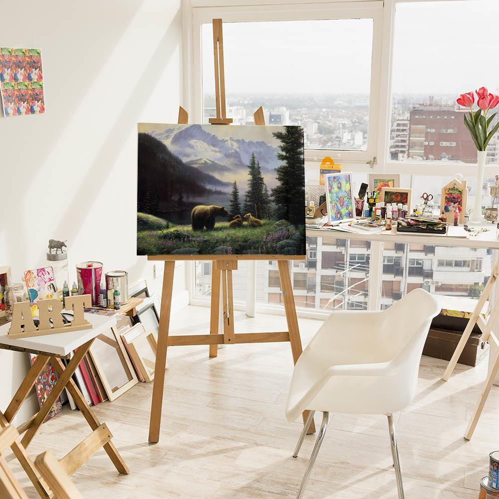 HINWEIS: Das Angebot gilt für ein Malset. Teddybären im Wald Gemälde nach Zahlen Größe 50x40 cm AUF EINEM HOLZRAHMEN