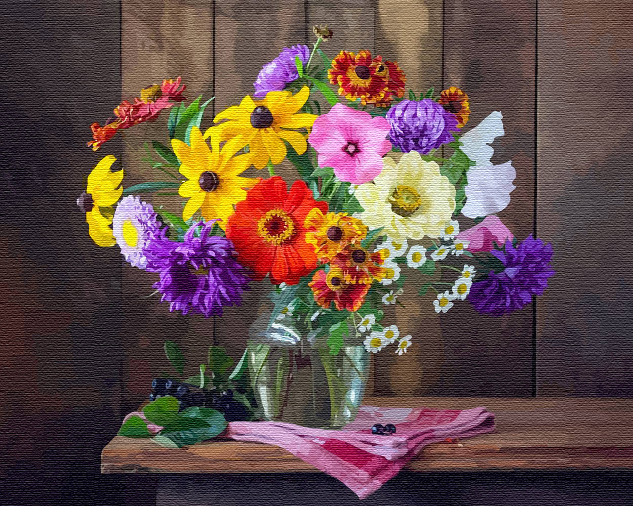 Malen nach Zahlen auf Keilrahmen – Blumenvase 50x40 cm Bild zum Ausmalen nach Zahlen