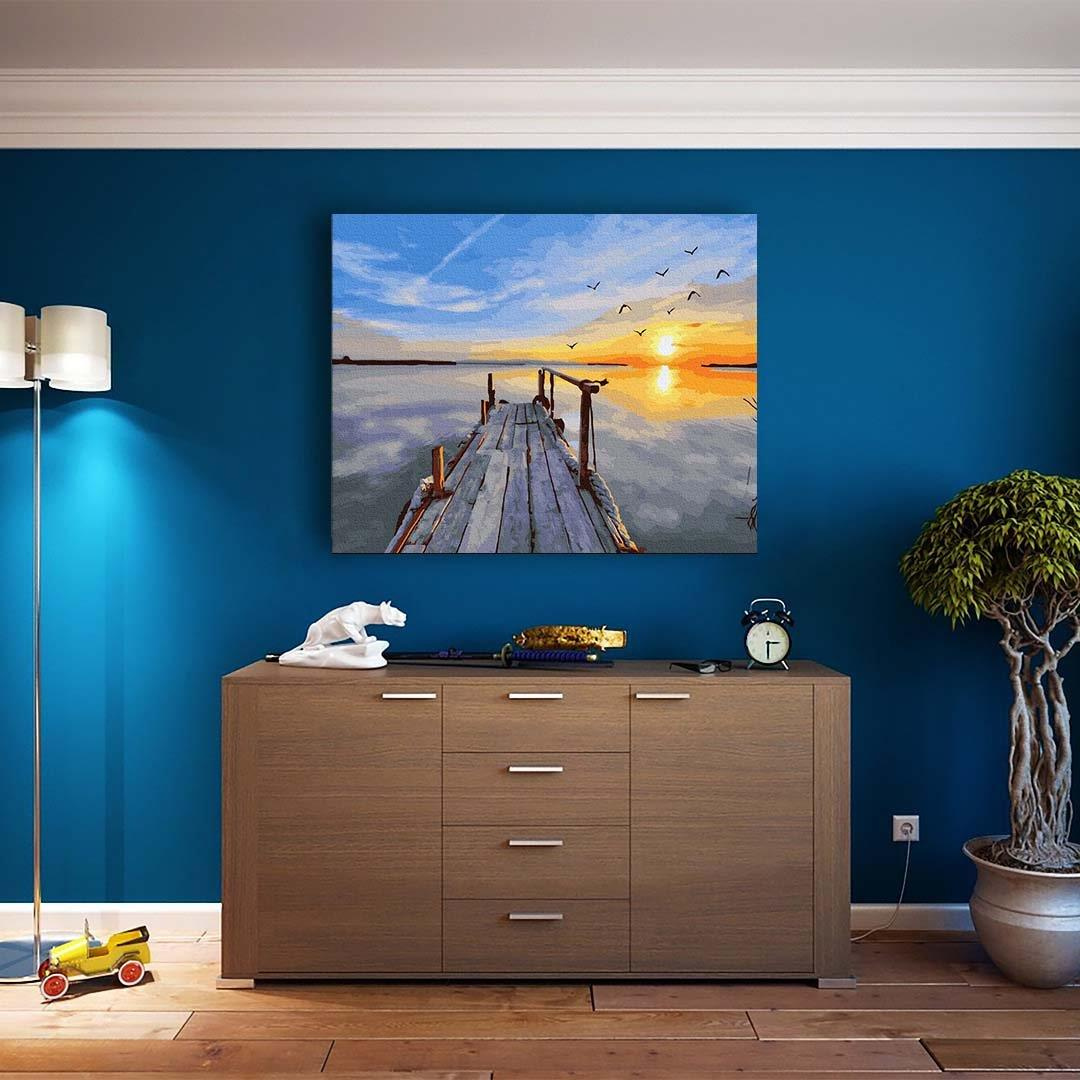 HINWEIS: Das Angebot gilt für ein Malset. Sonnenuntergang an der Lagune Gemälde nach Zahlen Größe 50x40 cm OHNE HOLZRAHMEN