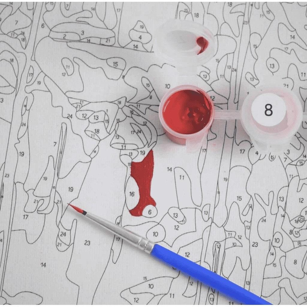 Malen nach Zahlen ist ein Kunstwerk, in welches das auf einer Leinwand gedruckte Bild in Bereiche unterteilt ist. Jeder Bereich ist mit einer Nummer gekennzeichnet, die einer bestimmten Farbe entspricht. Malen Sie jeden Bereich mit der entsprechenden Farbe aus und Sie erhalten ein echtes Meisterwerk, das Sie selbst erstellt haben.