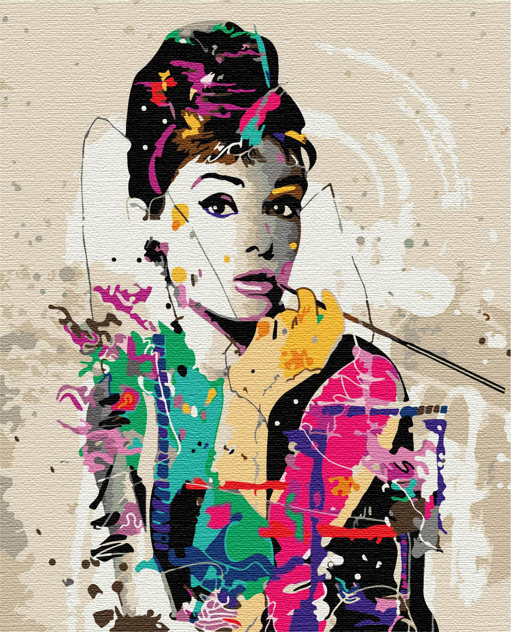 HINWEIS: Diese Seite betrifft das Malen-nach-Zahlen-Set „Audrey Hepburn“, Größe 50 x 40 cm, AUF EINEM HOLZRAHMEN