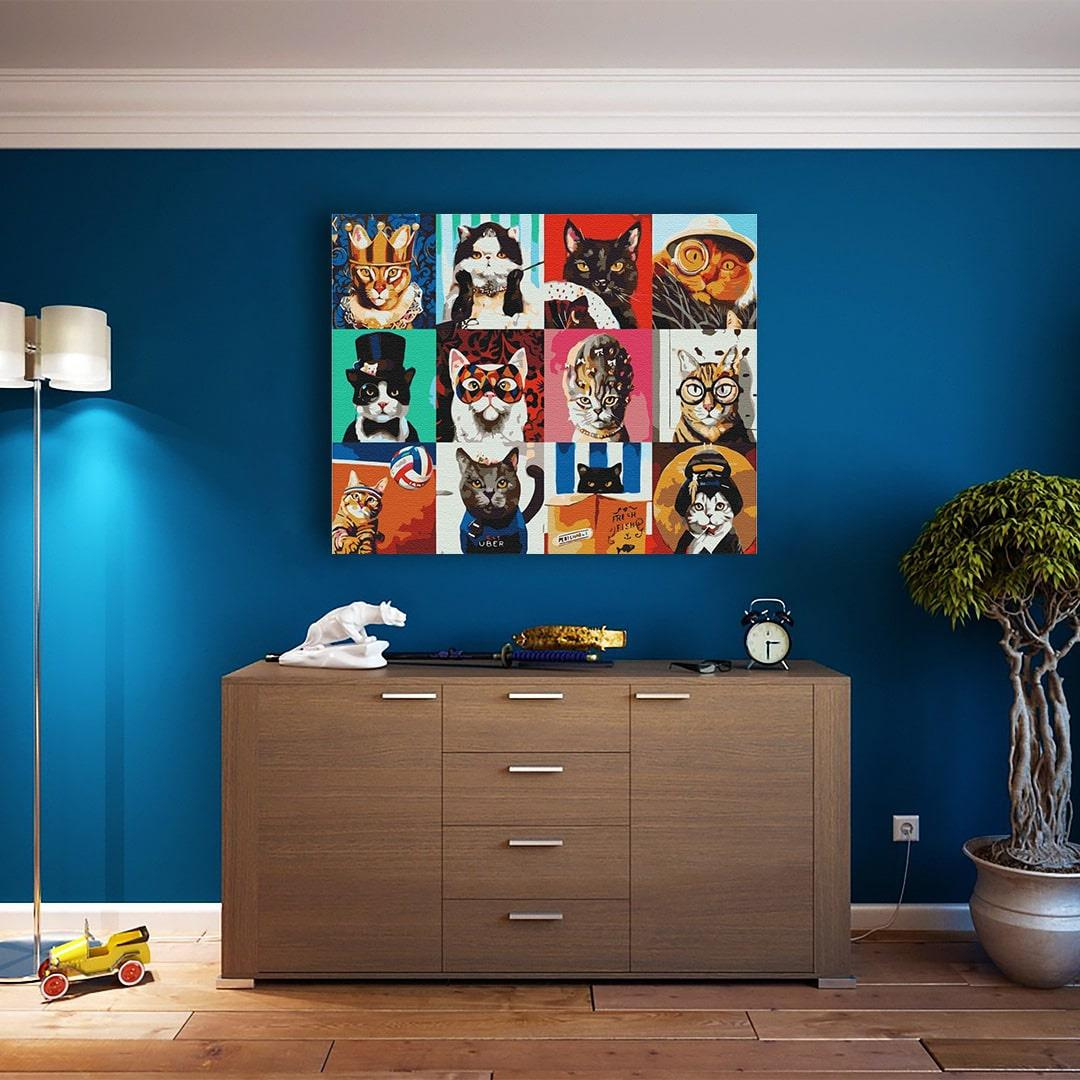 Das Malen-nach-Zahlen-Bild „Katzencollage“ können Sie für sich selbst oder als Geschenk für Teenager oder Erwachsene jeden Alters kaufen. Das Ausmalen bereitet garantiert viele vergnügliche Momente, und das fertige Werk wird zu einer wunderschönen und eindrucksvollen Geschenkidee, mit der Sie Wohnung oder Büro dekorieren können.