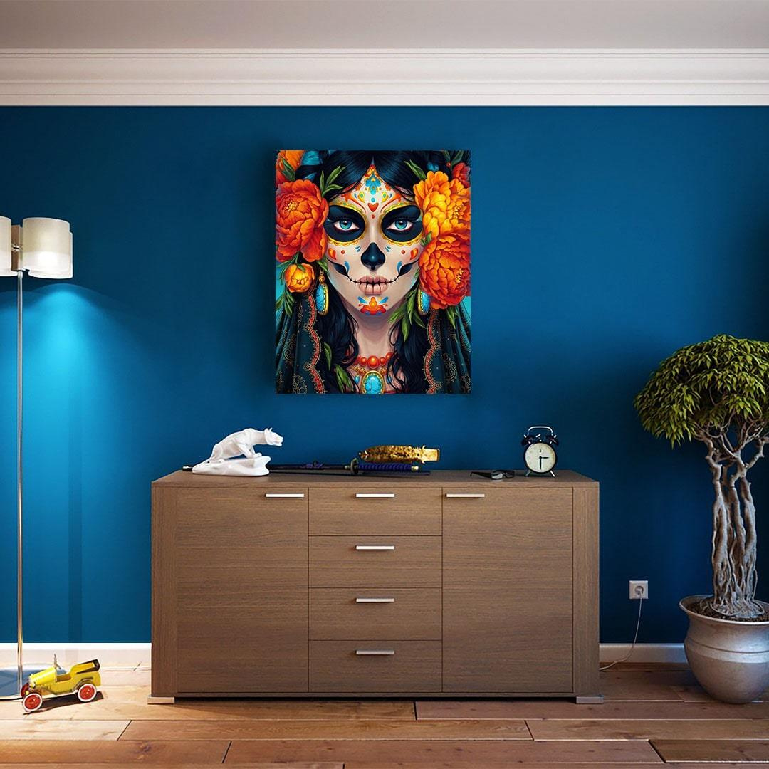 Malen nach Zahlen auf Keilrahmen – Mexiko in ihren Augen (Halloween) 50x40 cm Bild zum Ausmalen nach Zahlen