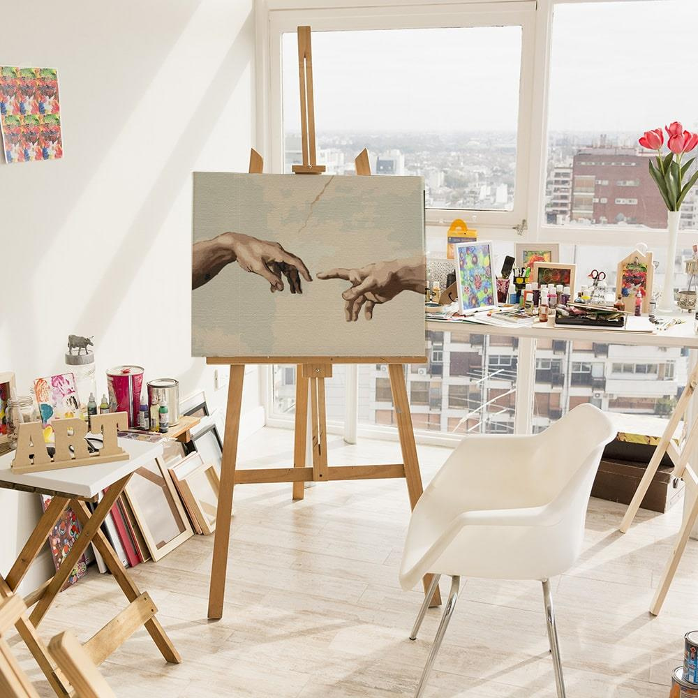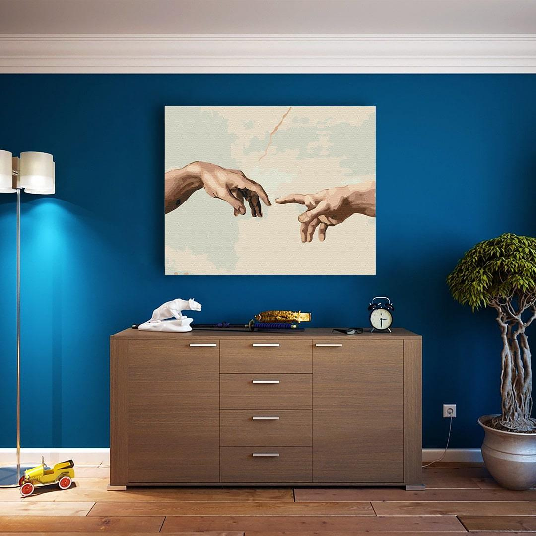 Malen nach Zahlen auf Keilrahmen – Erschaffung Adams 50x40 cm Bild zum Ausmalen nach Zahlen