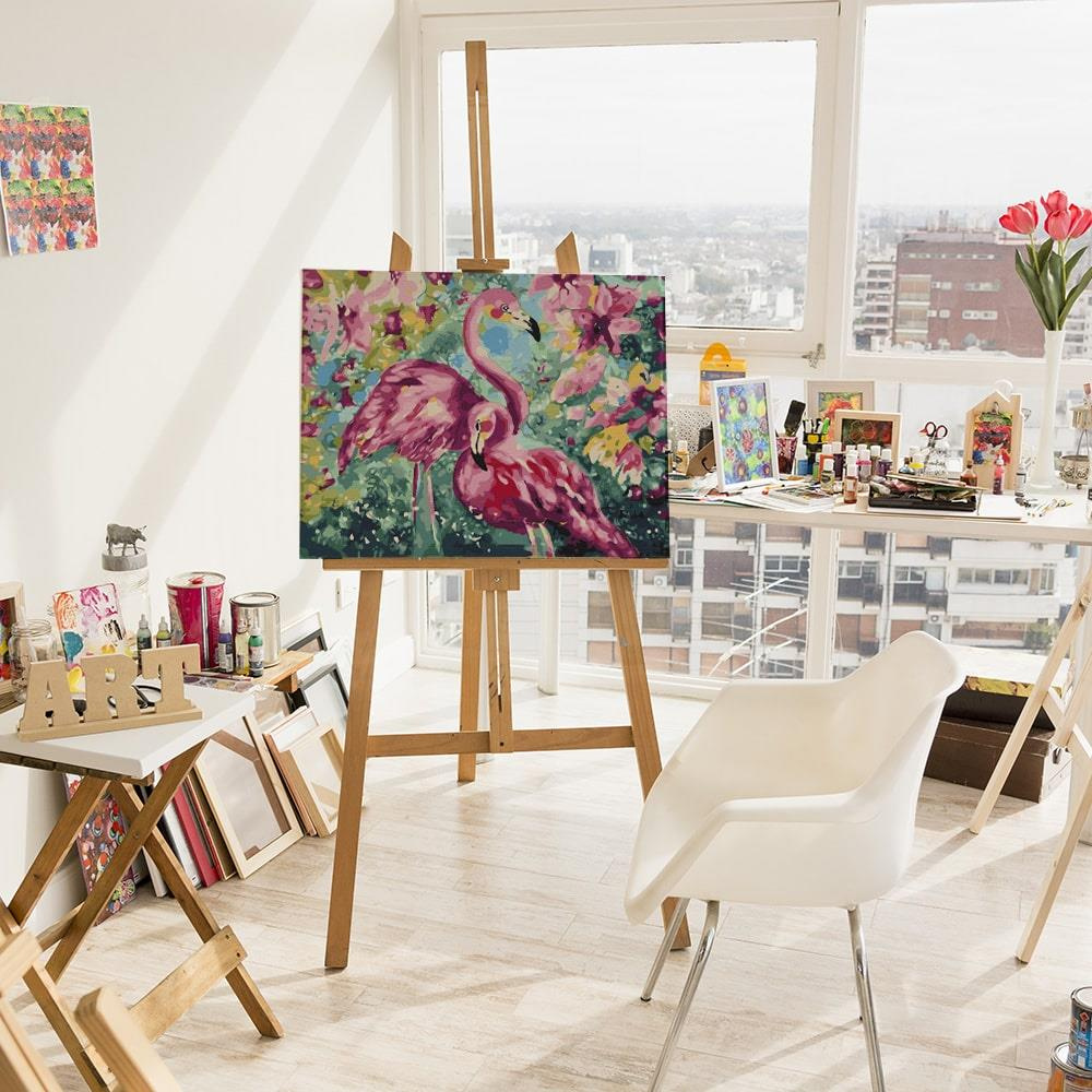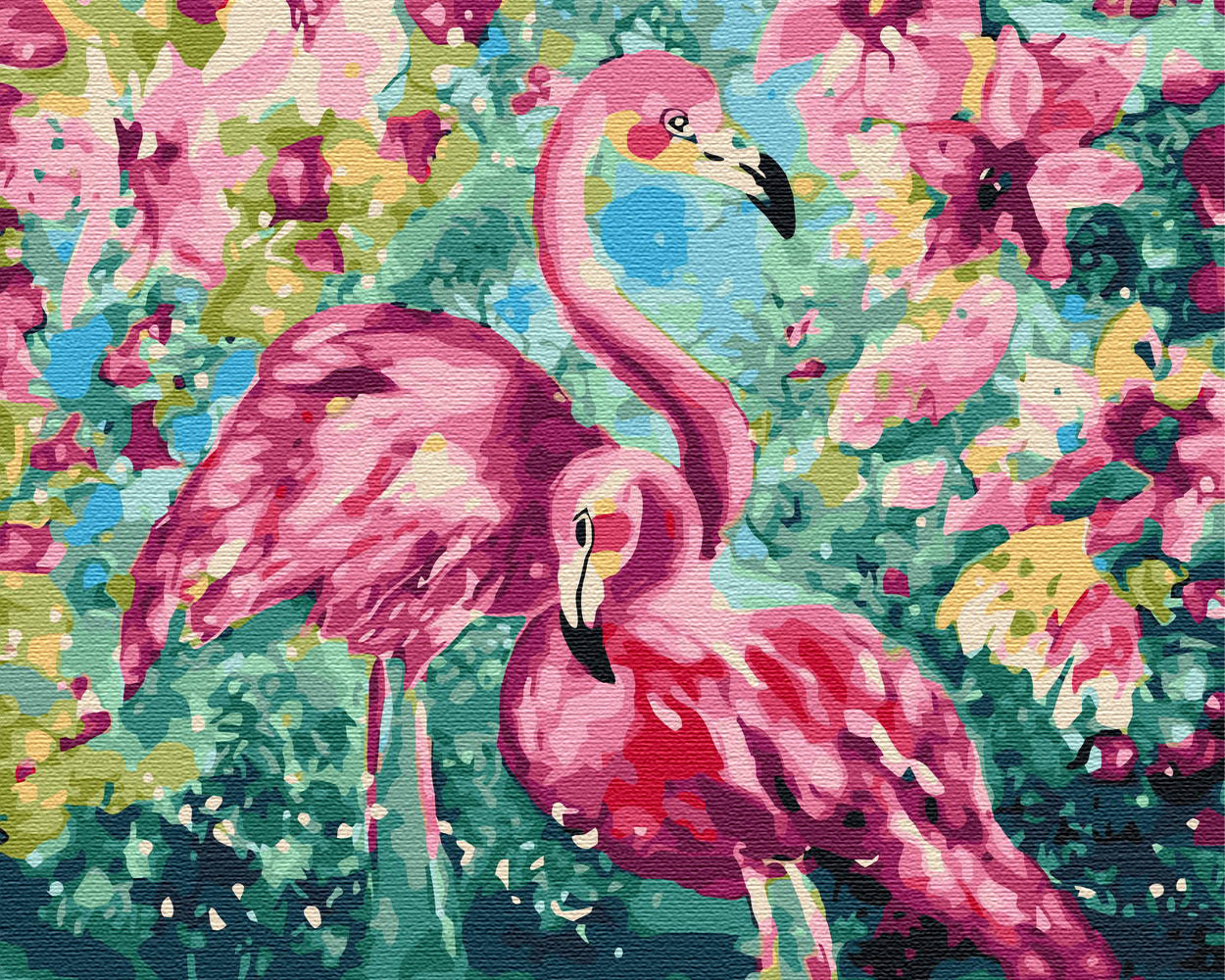 Malen-nach-Zahlen-Set Flamingos in Blumen 50x40 cm auf Holzkeilrahmen