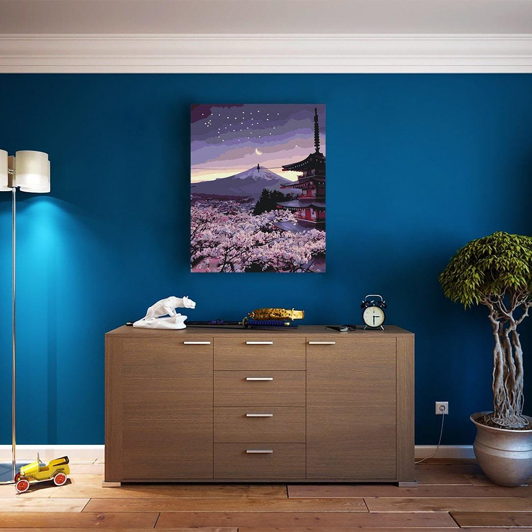 Malen nach Zahlen auf Keilrahmen – Japan am Abend 50x40 cm Bild zum Ausmalen nach Zahlen