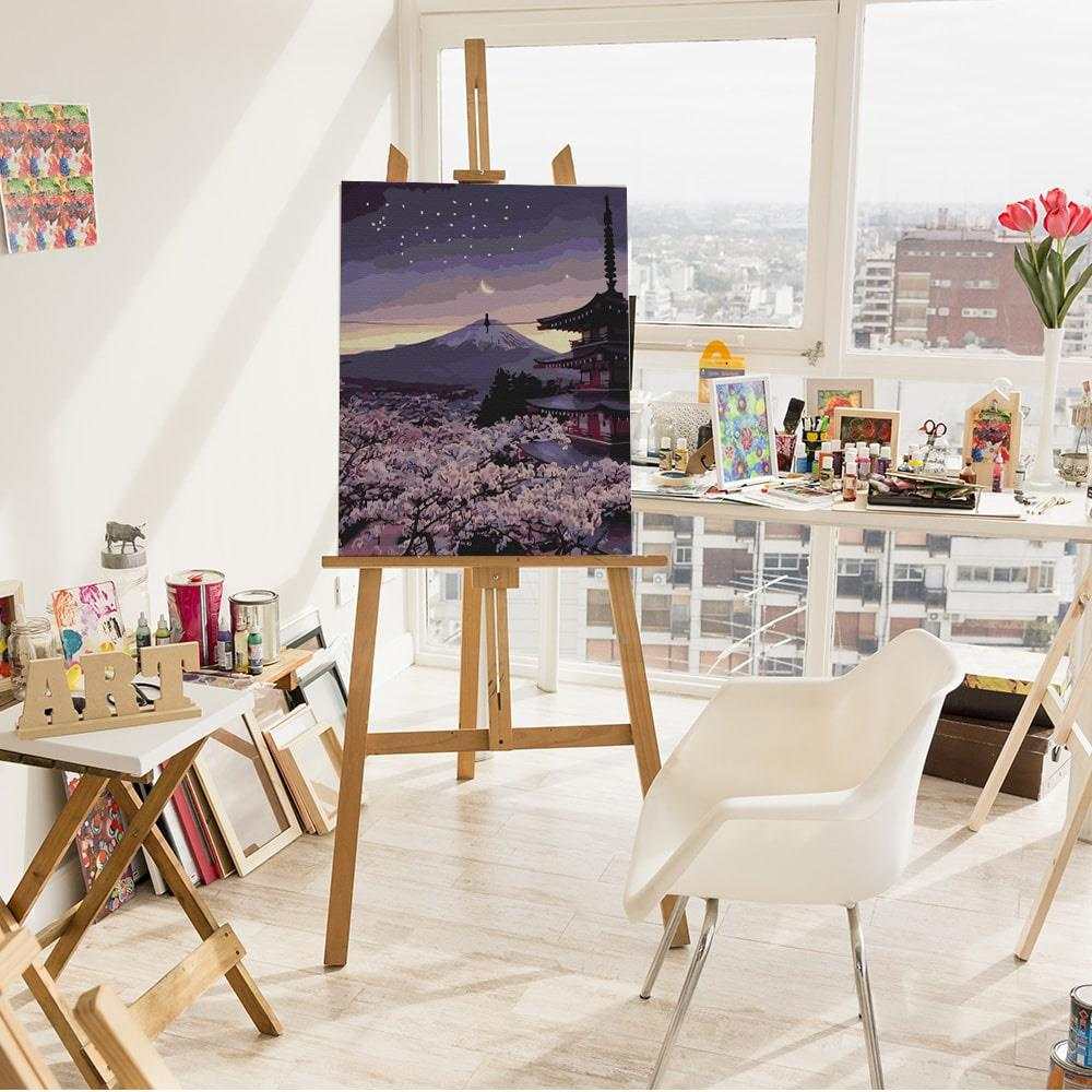 Malen-nach-Zahlen-Set Japan am Abend 50x40 cm auf Holzkeilrahmen