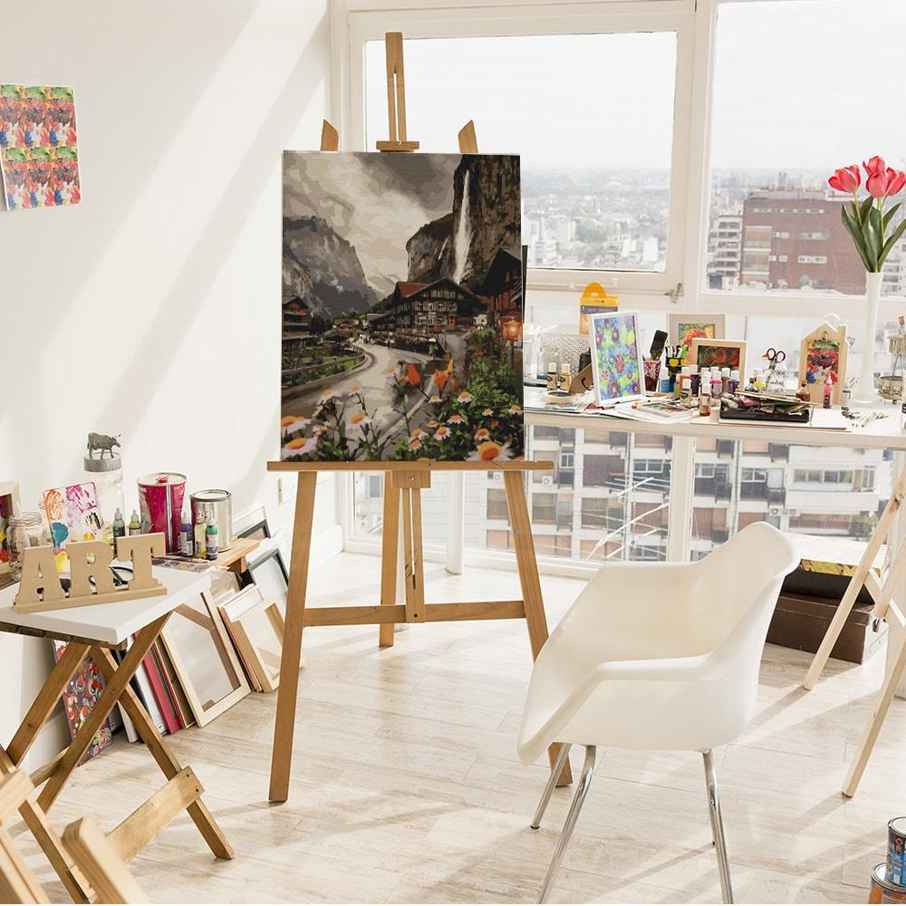 Malen-nach-Zahlen-Set Eine Stadt in der Schweiz 50x40 cm auf Holzkeilrahmen