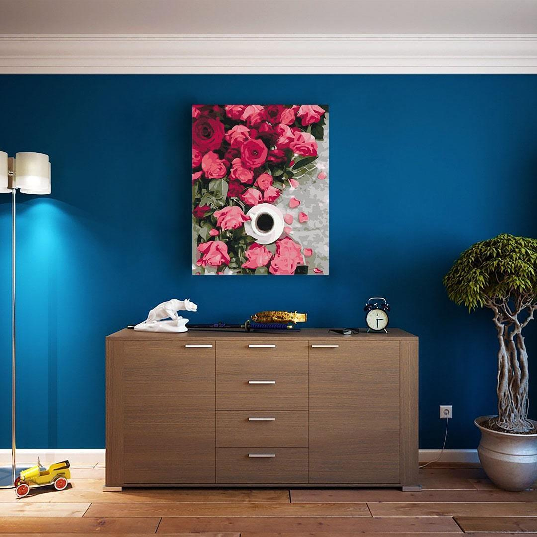 Zum Malen nach Zahlen einstellen Rosen und Kaffee Gemälde nach Zahlen 40x50cm