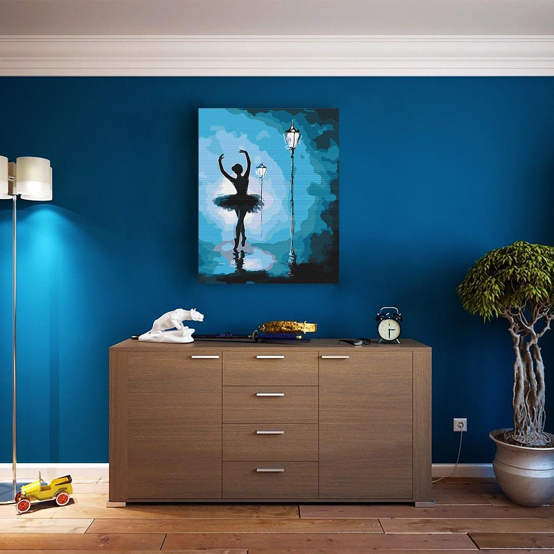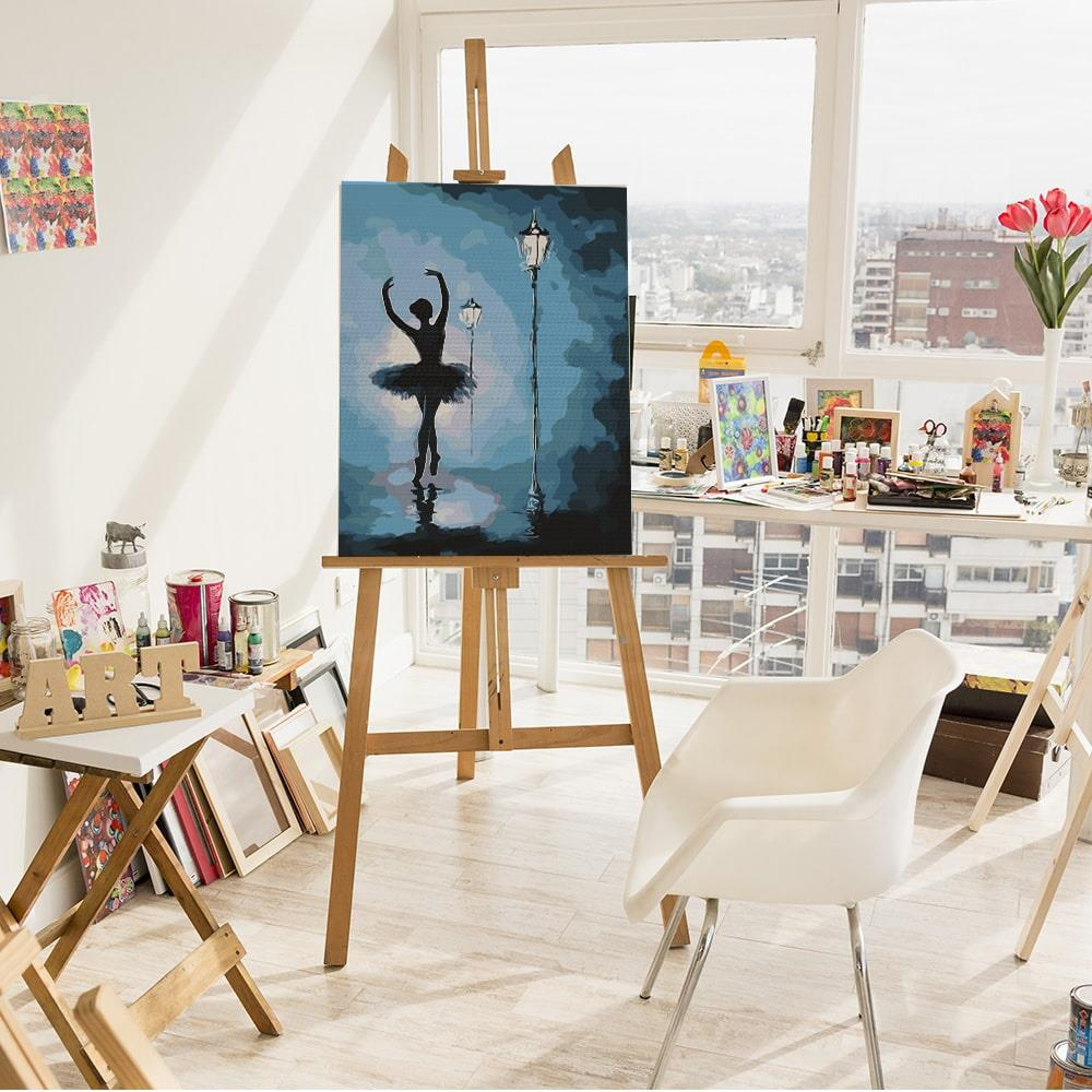 HINWEIS: Das Angebot gilt für ein Malset. Ballerina im Licht der Lampen Gemälde nach Zahlen Größe 50x40 cm OHNE HOLZRAHMEN