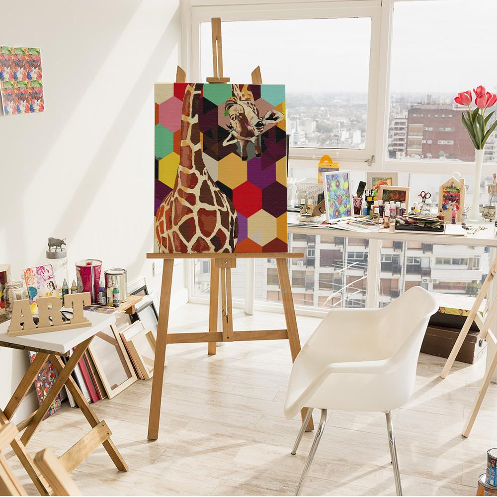 Malen nach Zahlen auf Keilrahmen – Giraffe im Mosaik 50x40 cm Bild zum Ausmalen nach Zahlen