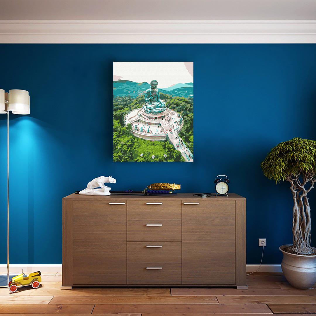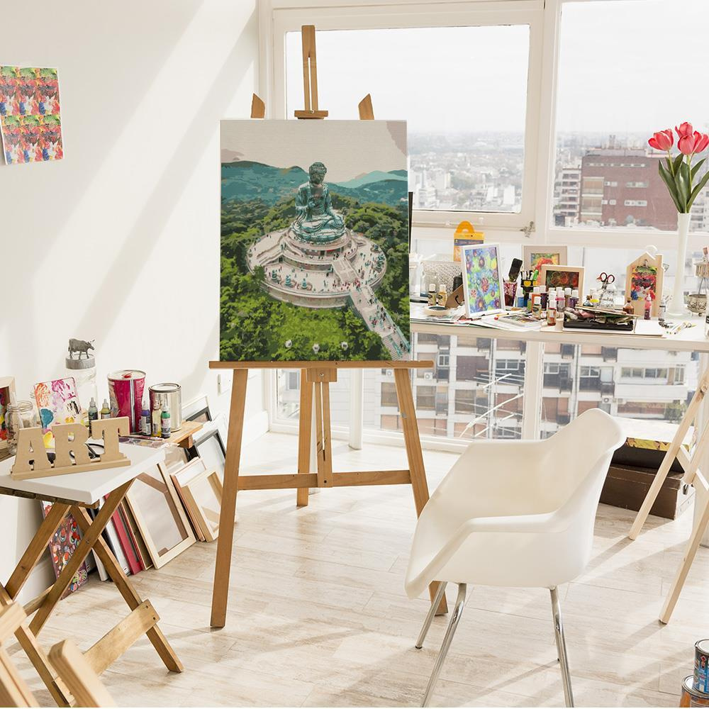 Malen nach Zahlen auf Keilrahmen – Tian Tan Großer Buddha 50x40 cm Bild zum Ausmalen nach Zahlen