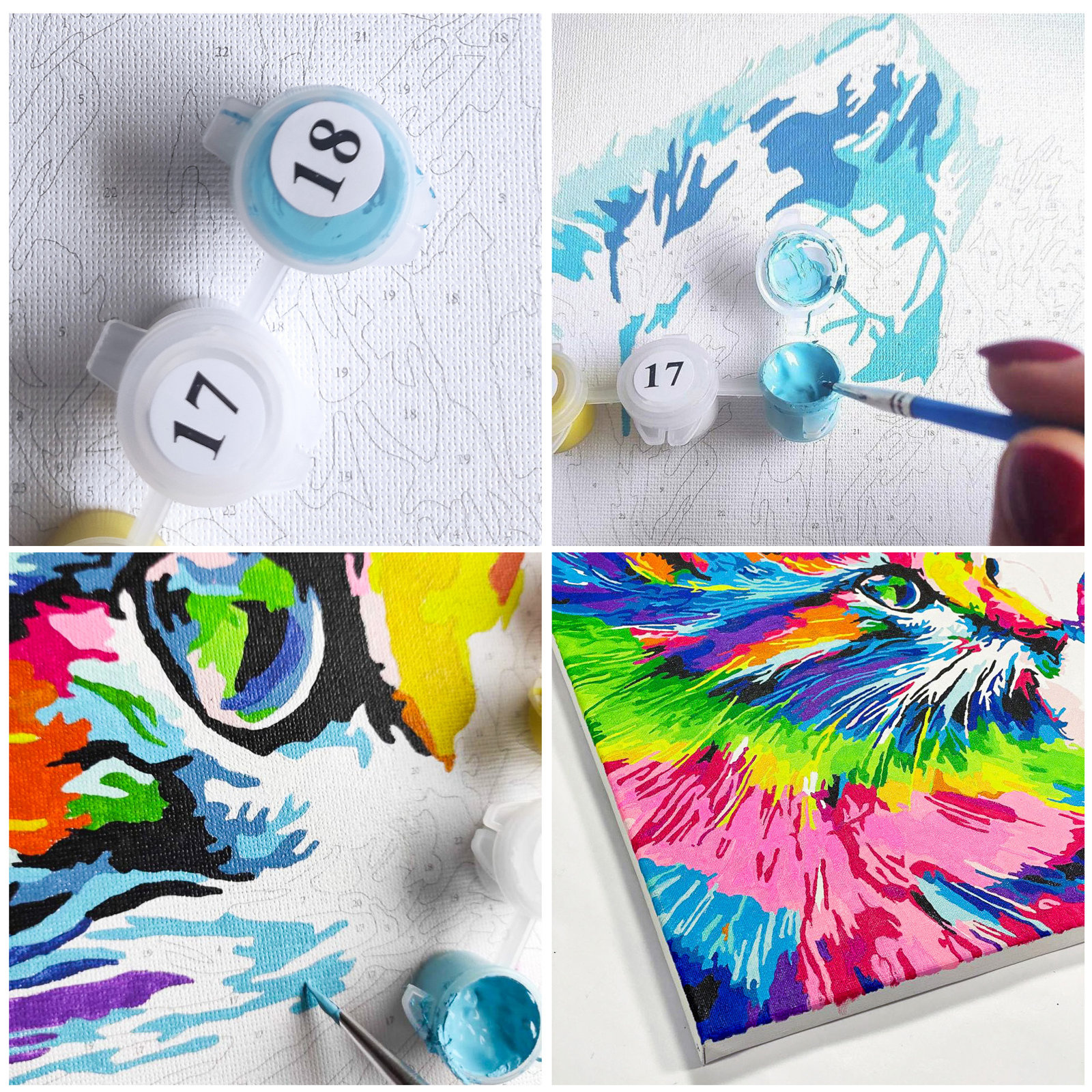 Wie Sie sehen, ist ein Malen-nach-Zahlen-Bild für jeden geeignet: Um nach Zahlen zu malen, braucht man kein Zeichentalent oder ein Kunststudium. Man benötigt nur etwas Zeit und die Bereitschaft, sich auf das Ausmalen kleiner Bereiche zu konzentrieren!