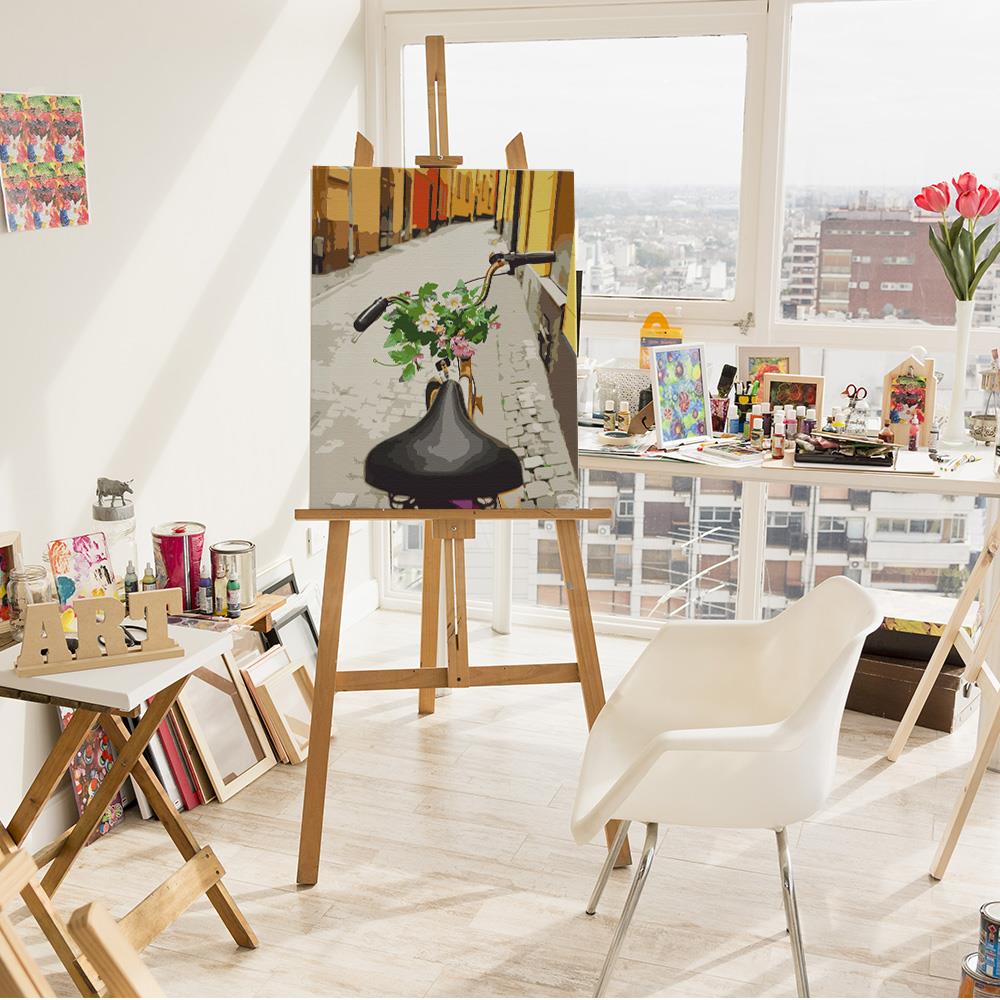 Das Malen-nach-Zahlen-Bild „Radfahren in der Altstadt“ können Sie für sich selbst oder als Geschenk für Teenager oder Erwachsene jeden Alters kaufen. Das Ausmalen bereitet garantiert viele vergnügliche Momente, und das fertige Werk wird zu einer wunderschönen und eindrucksvollen Geschenkidee, mit der Sie Wohnung oder Büro dekorieren können.