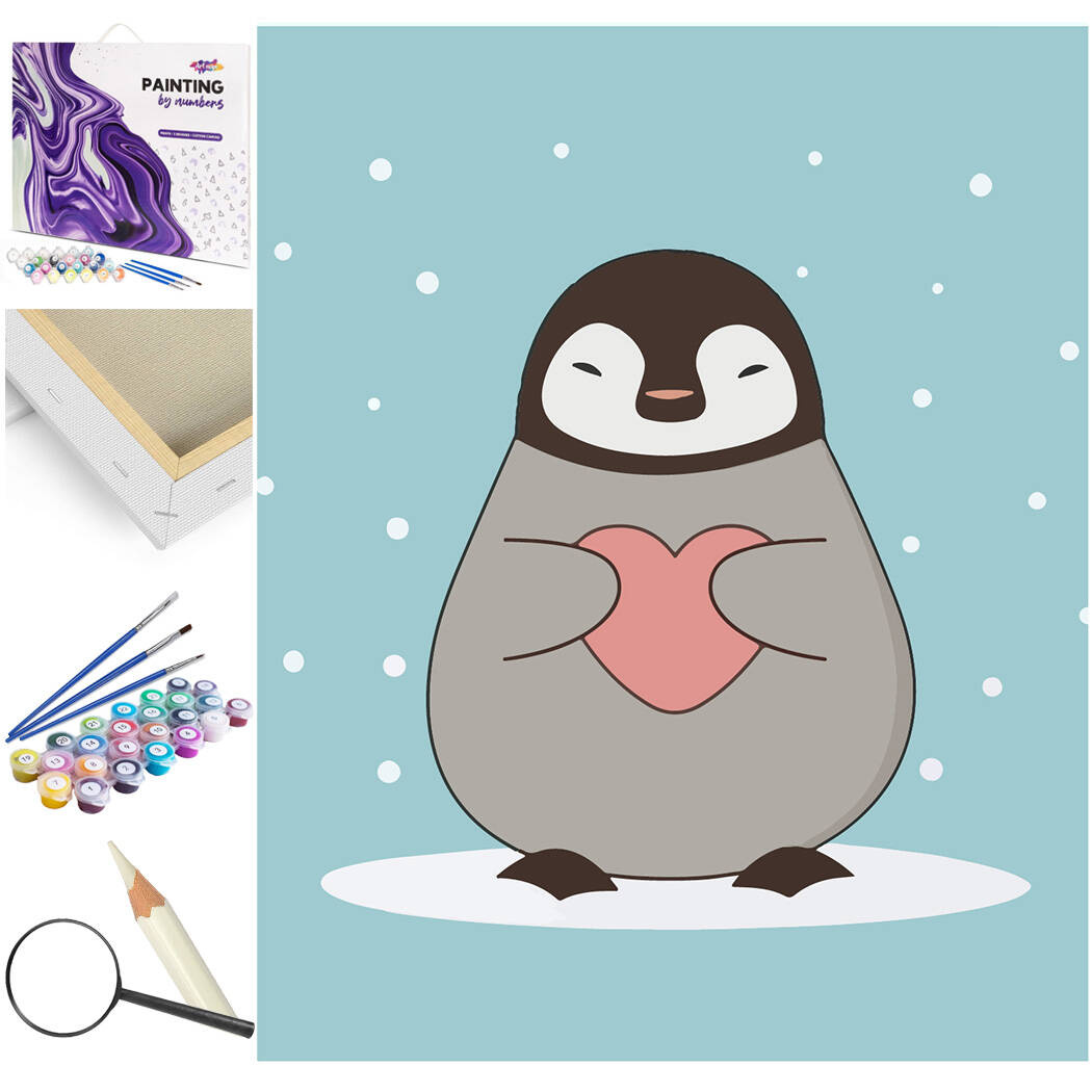 Das Malen-nach-Zahlen-Bild „Pinguin mit Herz“ können Sie für sich selbst oder als Geschenk für Teenager oder Erwachsene jeden Alters kaufen. Das Ausmalen bereitet garantiert viele vergnügliche Momente, und das fertige Werk wird zu einer wunderschönen und eindrucksvollen Geschenkidee, mit der Sie Wohnung oder Büro dekorieren können.