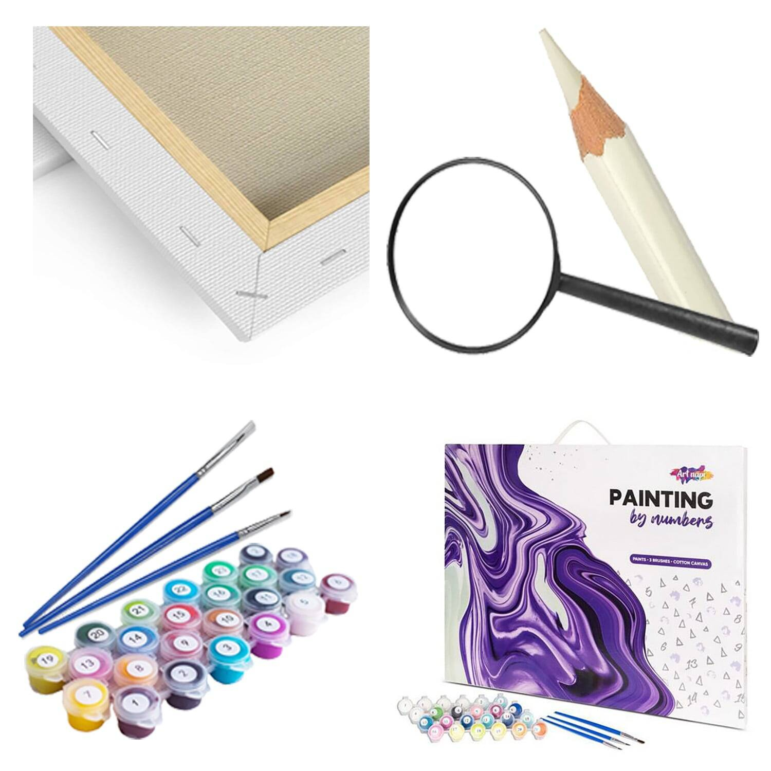Malen nach Zahlen ist ein Set, bei dem das Motiv auf Leinwand in Segmente unterteilt ist. Jedes Segment ist mit einer Zahl versehen, die einer bestimmten Farbe entspricht. Bemalen Sie jedes Segment mit der passenden Farbe und Sie erhalten ein echtes, von Ihnen selbst geschaffenes Meisterwerk.