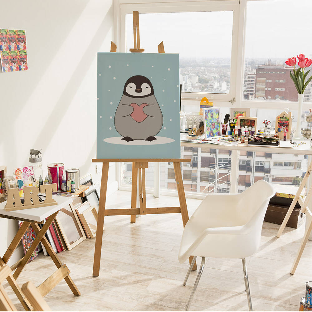 Malen-nach-Zahlen-Set Pinguin mit Herz 50x40 cm auf Holzkeilrahmen