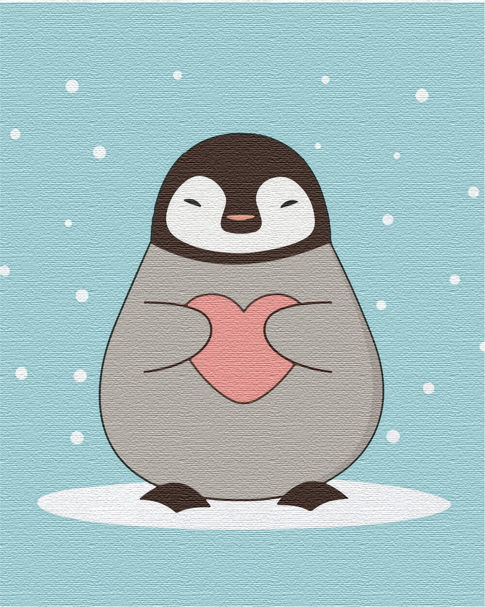 HINWEIS: Diese Seite betrifft das Malen-nach-Zahlen-Set „Pinguin mit Herz“, Größe 50 x 40 cm, AUF EINEM HOLZRAHMEN