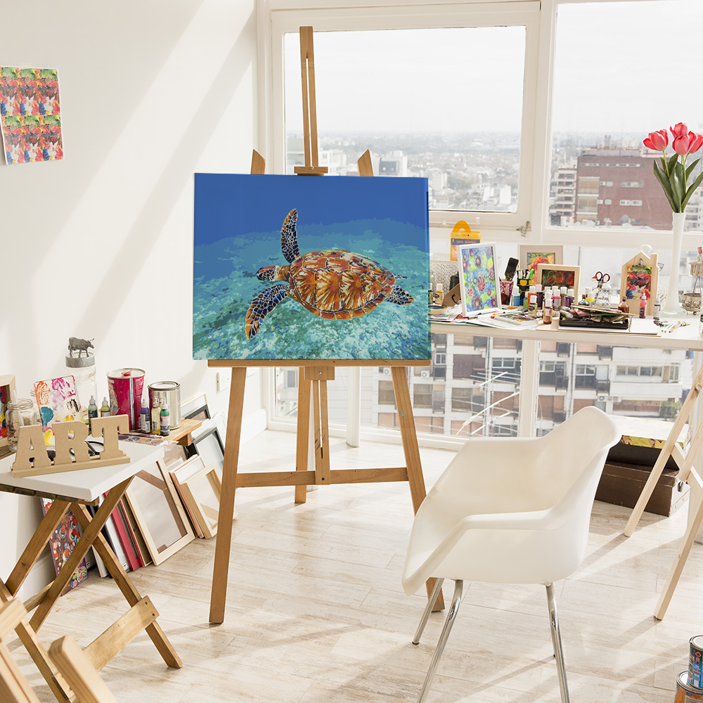 Malen-nach-Zahlen-Set Schildkröte im Meer 50x40 cm auf Holzkeilrahmen