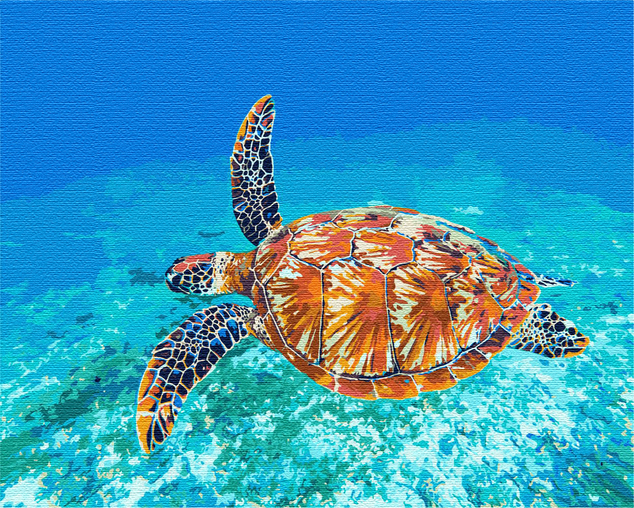 Malen nach Zahlen auf Keilrahmen – Schildkröte im Meer 50x40 cm Bild zum Ausmalen nach Zahlen