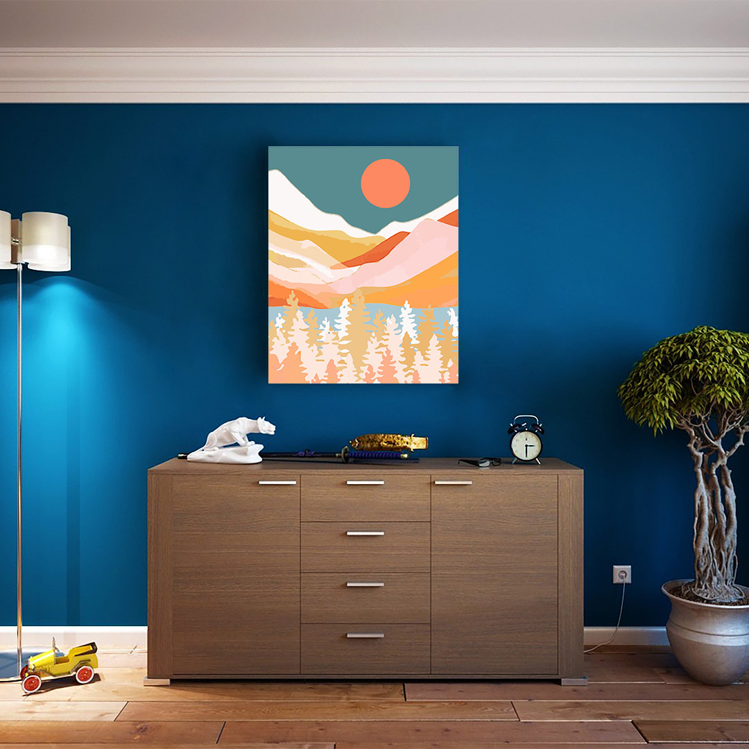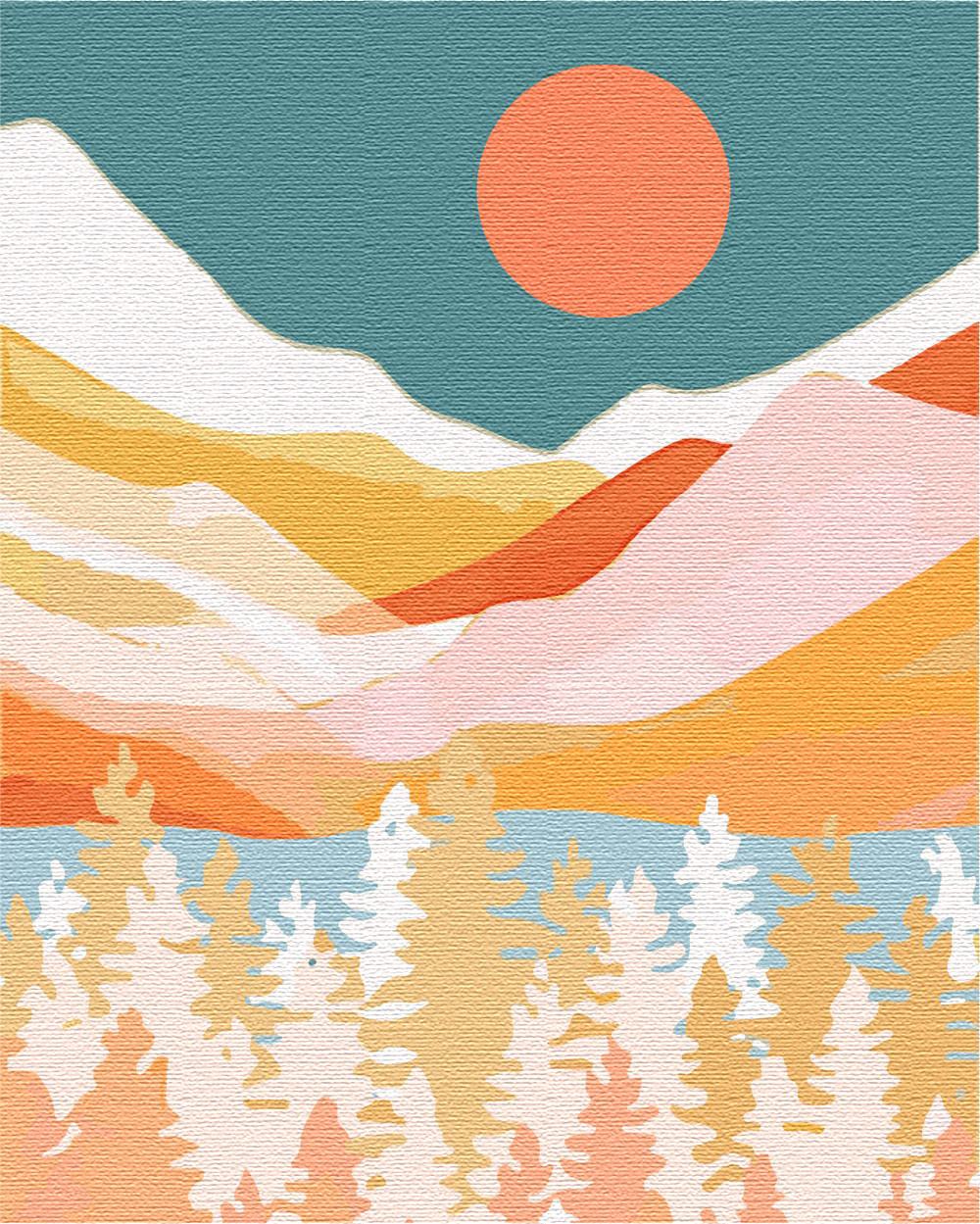 Malen nach Zahlen auf Keilrahmen – Berge und Wald (einfach) 50x40 cm Bild zum Ausmalen nach Zahlen