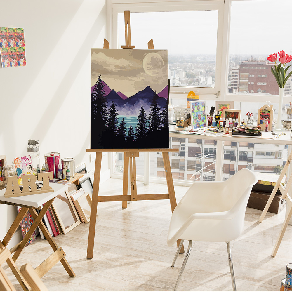 Das Malen-nach-Zahlen-Bild „Violette Berge“ können Sie für sich selbst oder als Geschenk für Teenager oder Erwachsene jeden Alters kaufen. Das Ausmalen bereitet garantiert viele vergnügliche Momente, und das fertige Werk wird zu einer wunderschönen und eindrucksvollen Geschenkidee, mit der Sie Wohnung oder Büro dekorieren können.