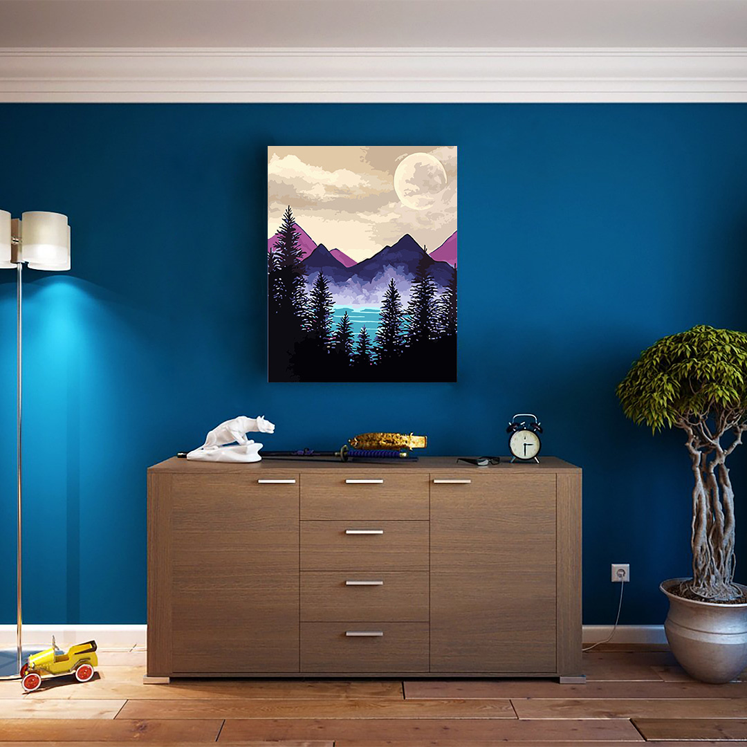 HINWEIS: Diese Seite betrifft das Malen-nach-Zahlen-Set „Violette Berge“, Größe 50 x 40 cm, AUF EINEM HOLZRAHMEN