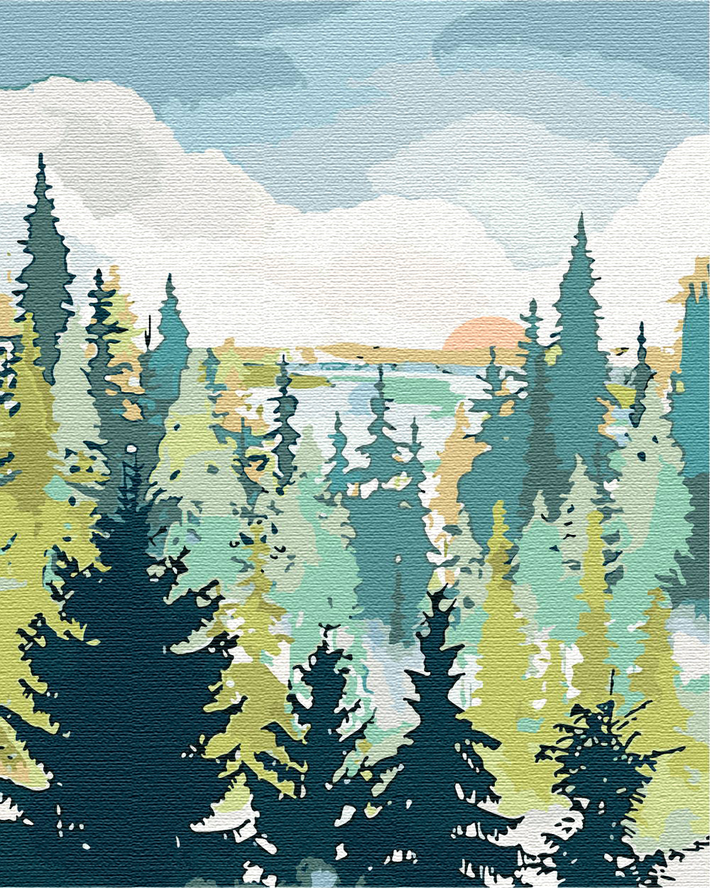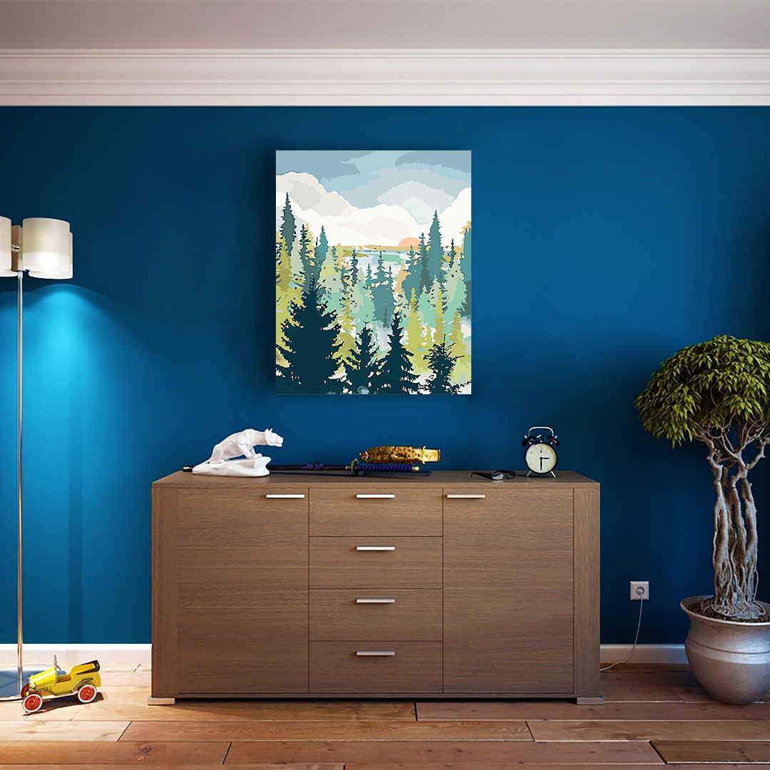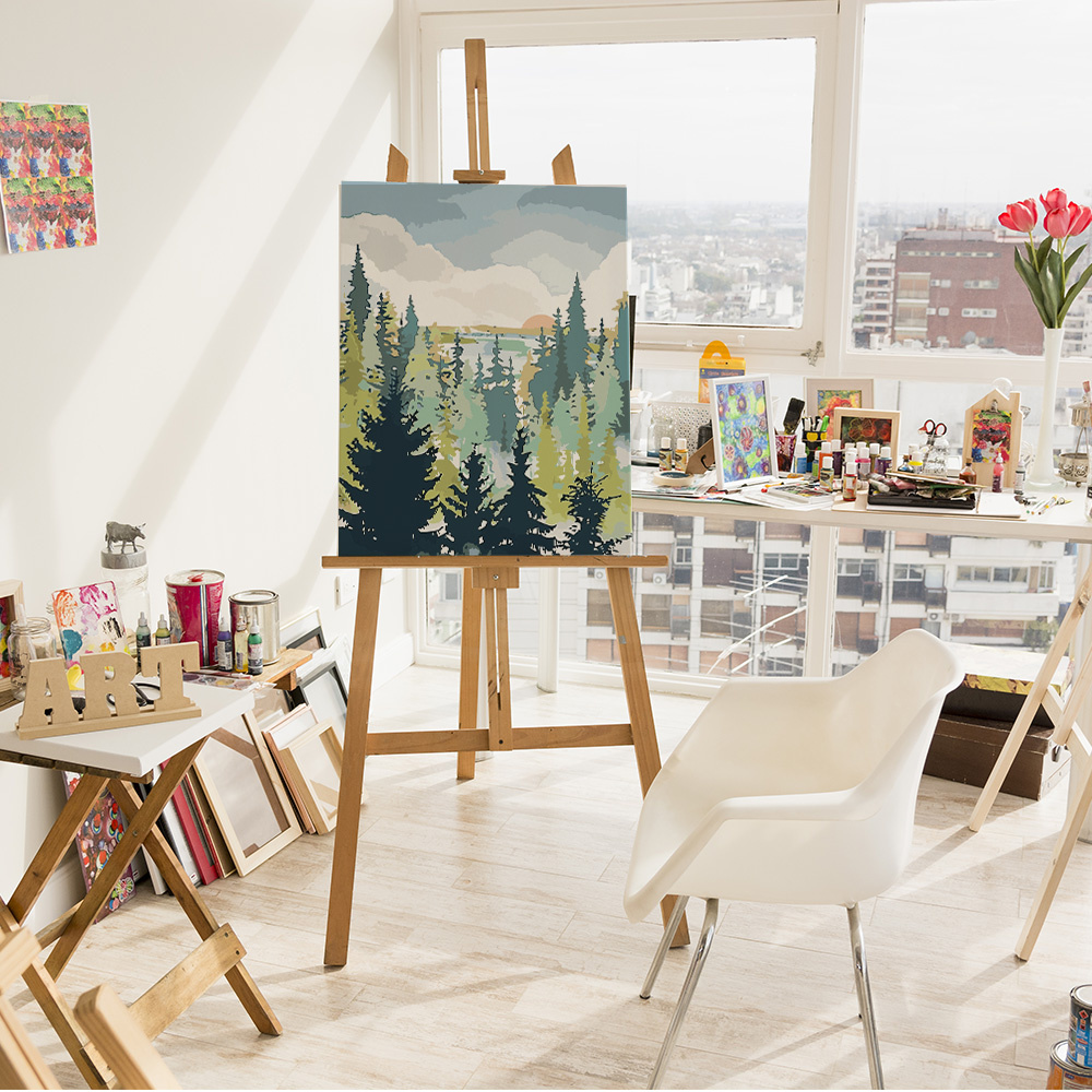 Malen nach Zahlen auf Keilrahmen – Grüner Wald 50x40 cm Bild zum Ausmalen nach Zahlen