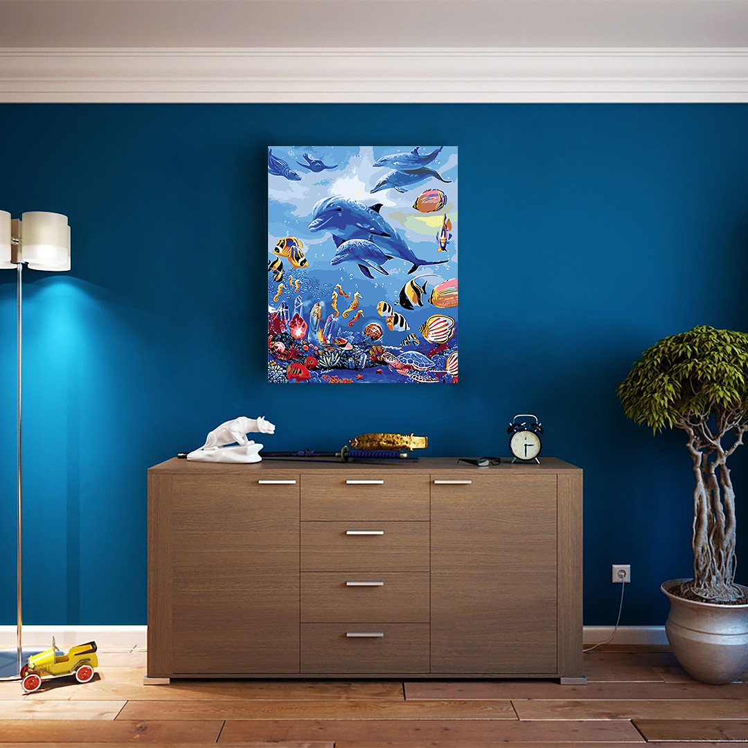 Das Malen-nach-Zahlen-Bild „Meereswelt“ können Sie für sich selbst oder als Geschenk für Teenager oder Erwachsene jeden Alters kaufen. Das Ausmalen bereitet garantiert viele vergnügliche Momente, und das fertige Werk wird zu einer wunderschönen und eindrucksvollen Geschenkidee, mit der Sie Wohnung oder Büro dekorieren können.