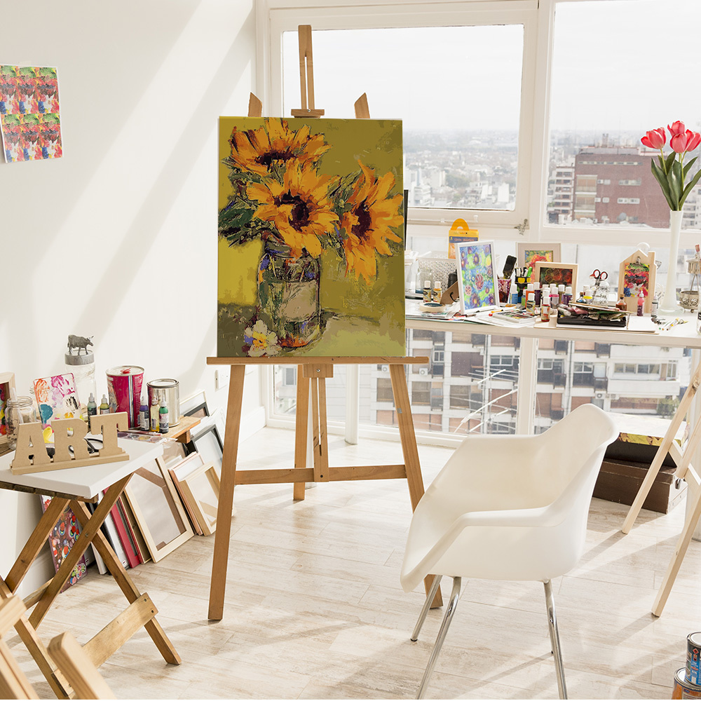Das Malen-nach-Zahlen-Bild „Sonnenblumenstrauß“ können Sie für sich selbst oder als Geschenk für Teenager oder Erwachsene jeden Alters kaufen. Das Ausmalen bereitet garantiert viele vergnügliche Momente, und das fertige Werk wird zu einer wunderschönen und eindrucksvollen Geschenkidee, mit der Sie Wohnung oder Büro dekorieren können.