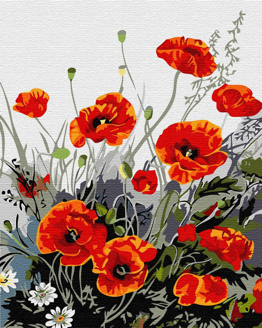 Malen nach Zahlen auf Keilrahmen – Tanzende Blumen 50x40 cm Bild zum Ausmalen nach Zahlen