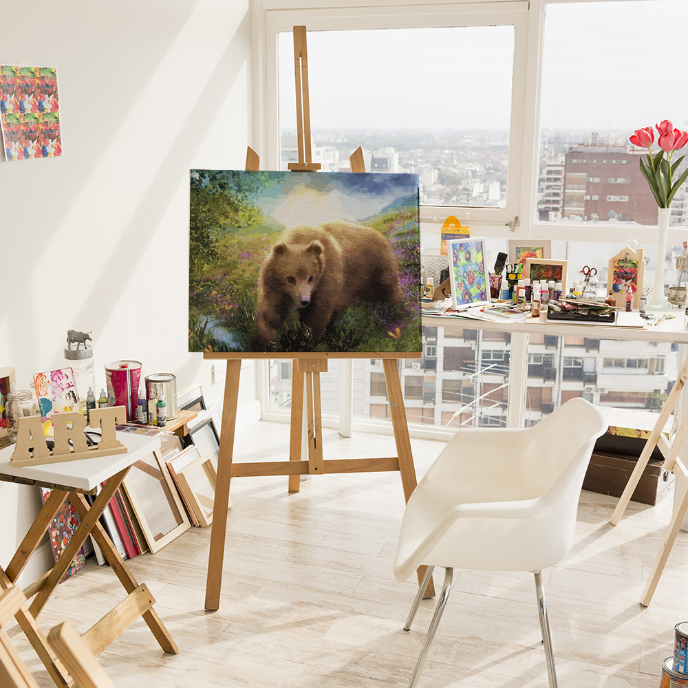 Malen-nach-Zahlen-Set Bär im Garten der Morgenröte 50x40 cm auf Holzkeilrahmen