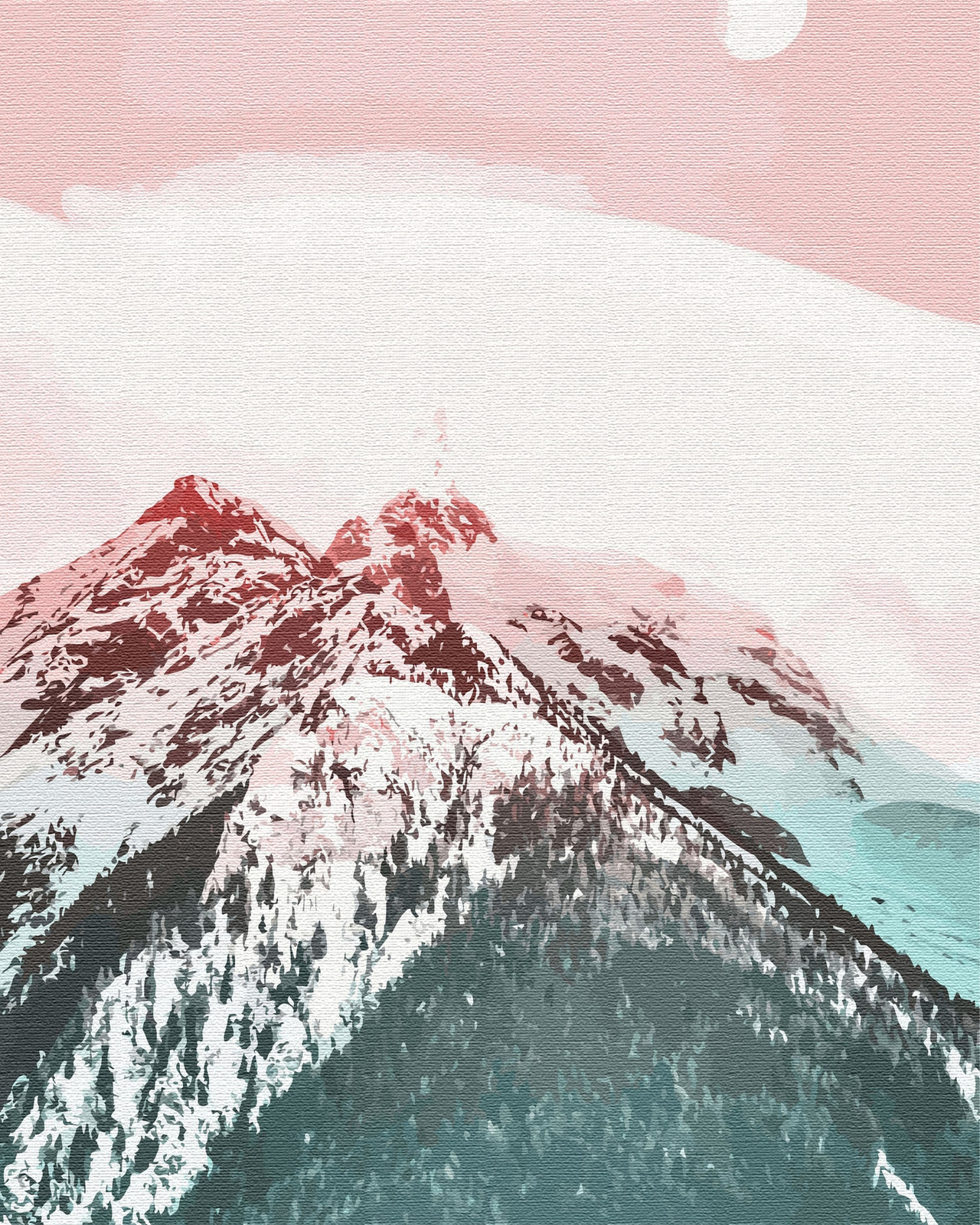 Malen nach Zahlen auf Keilrahmen – Rosa Gipfel der Träume 50x40 cm Bild zum Ausmalen nach Zahlen