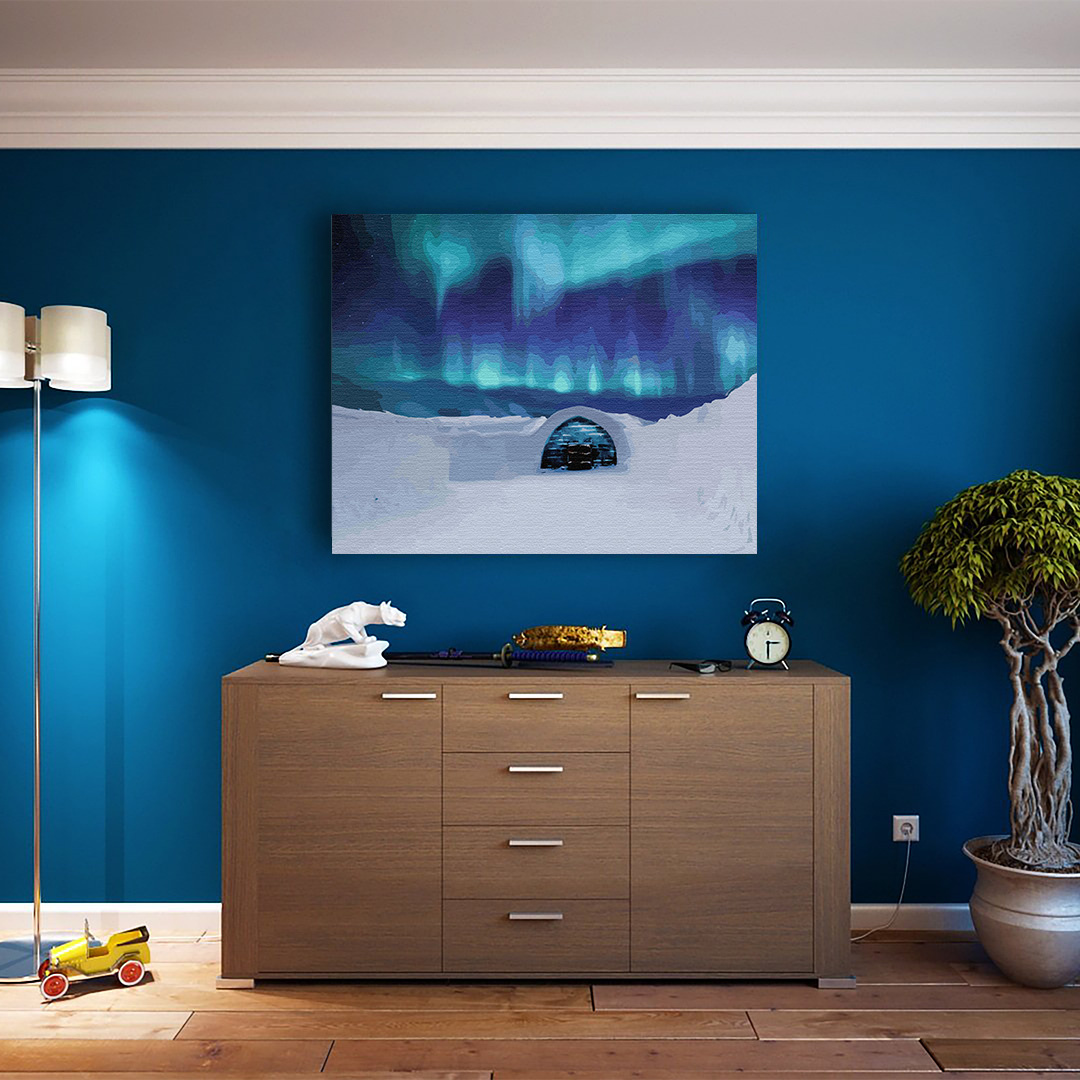 Malen nach Zahlen auf Keilrahmen – Nächtliche Tänze, Nordlichter 50x40 cm Bild zum Ausmalen nach Zahlen
