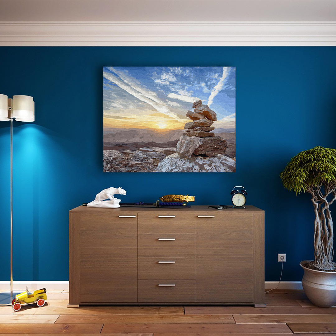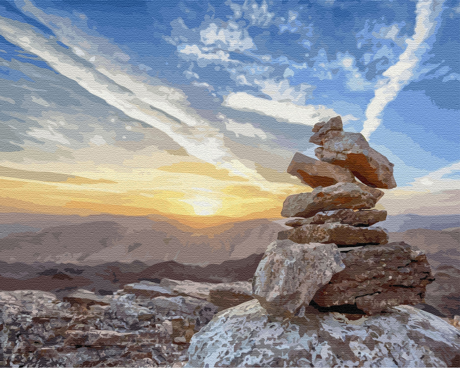 Malen nach Zahlen auf Keilrahmen – Sonnenuntergang über den Gipfeln 50x40 cm Bild zum Ausmalen nach Zahlen