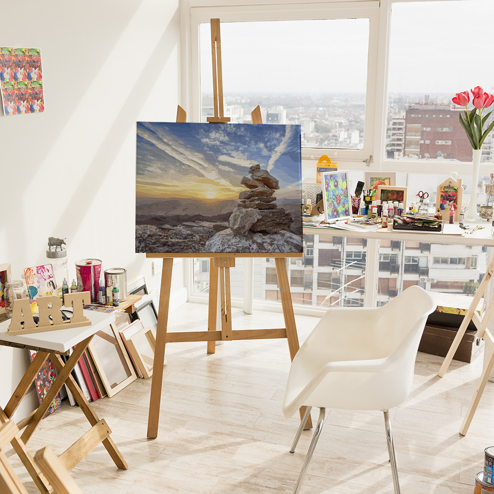 Das Malen-nach-Zahlen-Bild „Sonnenuntergang über den Gipfeln“ können Sie für sich selbst oder als Geschenk für Teenager oder Erwachsene jeden Alters kaufen. Das Ausmalen bereitet garantiert viele vergnügliche Momente, und das fertige Werk wird zu einer wunderschönen und eindrucksvollen Geschenkidee, mit der Sie Wohnung oder Büro dekorieren können.