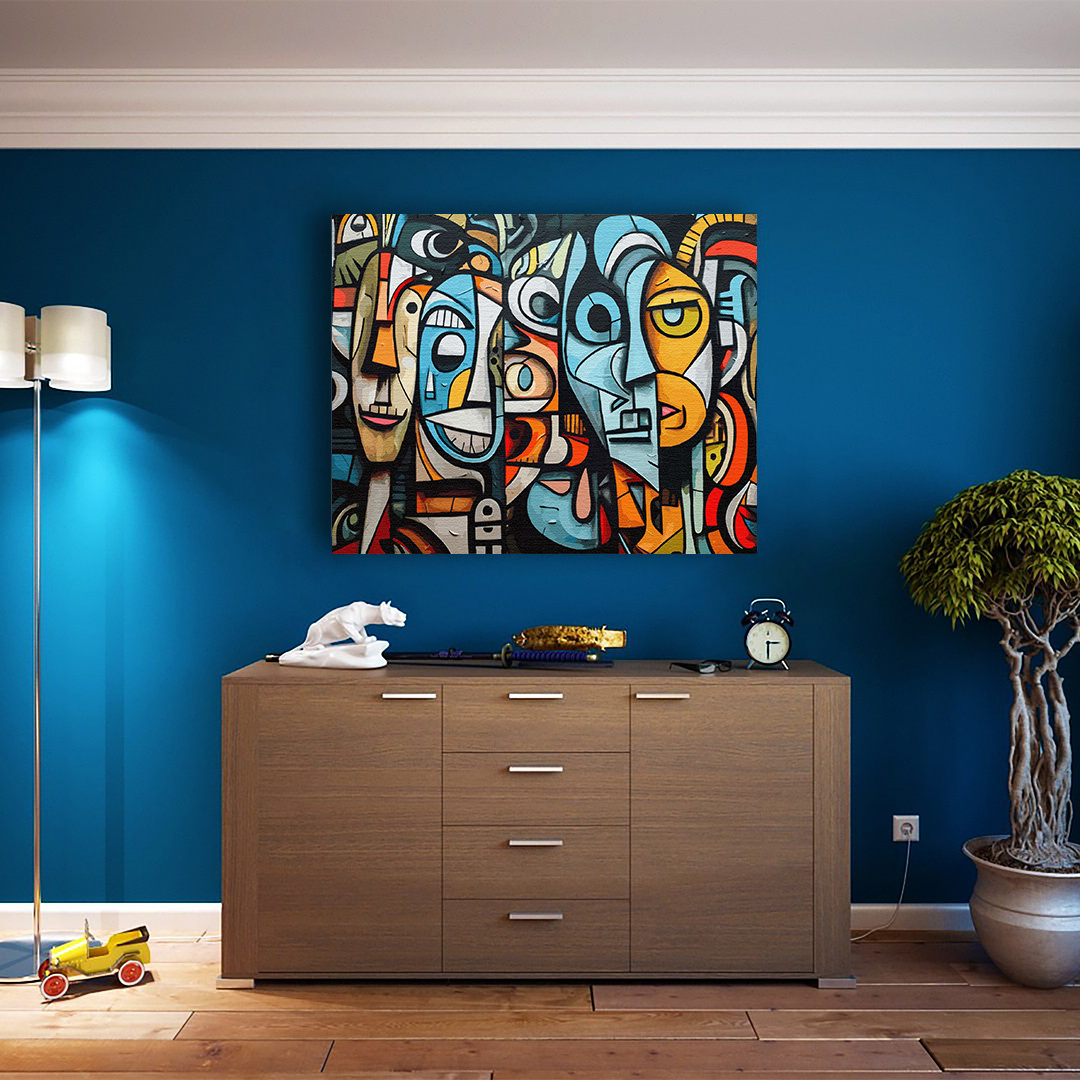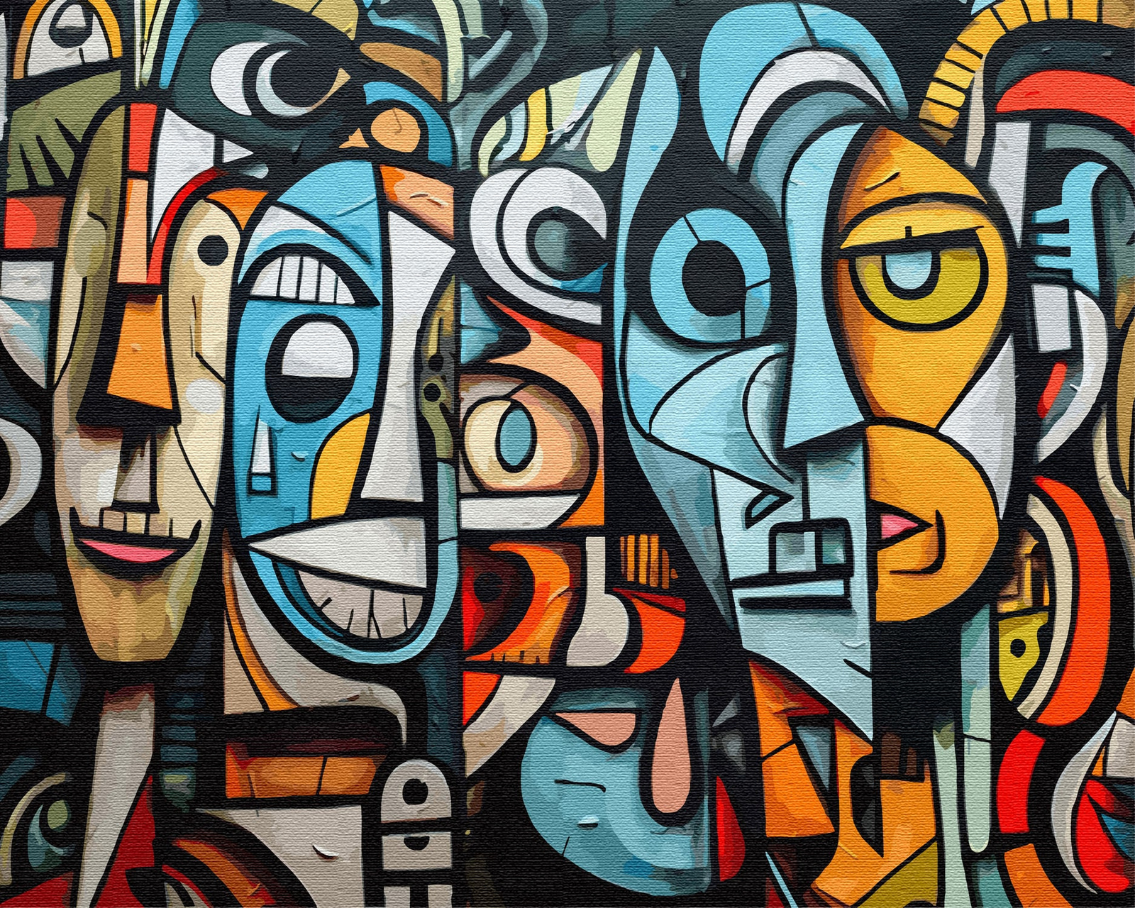 Malen nach Zahlen auf Keilrahmen – Abstrakte Gesichter 50x40 cm Bild zum Ausmalen nach Zahlen