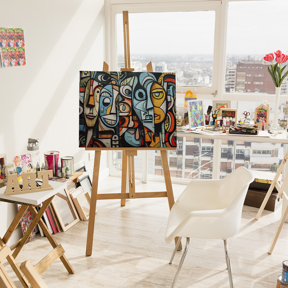 Malen-nach-Zahlen-Set Abstrakte Gesichter 50x40 cm auf Holzkeilrahmen