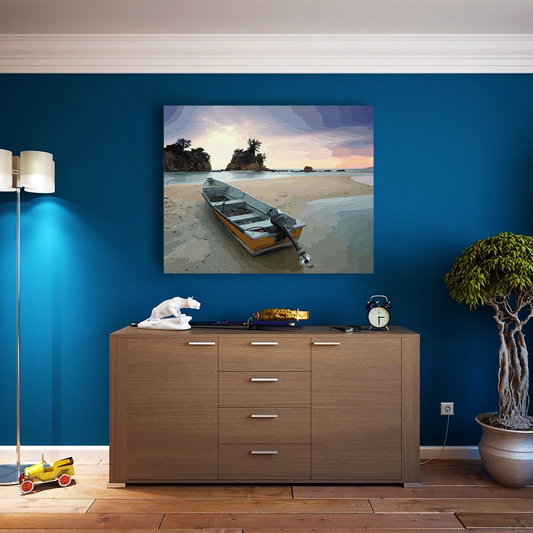 Malen nach Zahlen auf Keilrahmen – Stille am Strand 50x40 cm Bild zum Ausmalen nach Zahlen