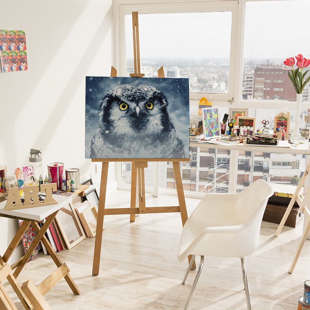 Malen-nach-Zahlen-Set Eine Eule im Wintersturm 50x40 cm auf Holzkeilrahmen