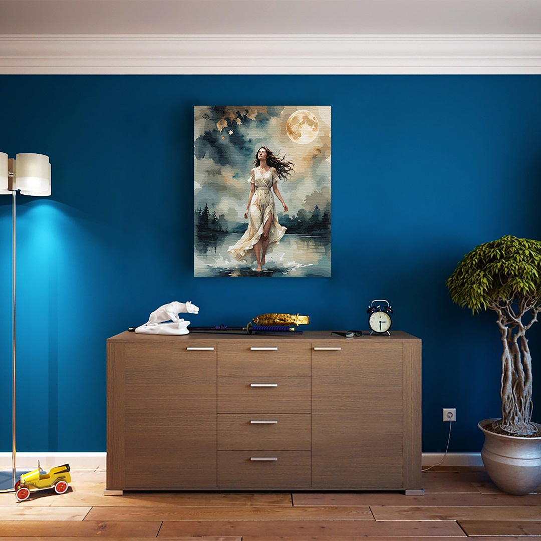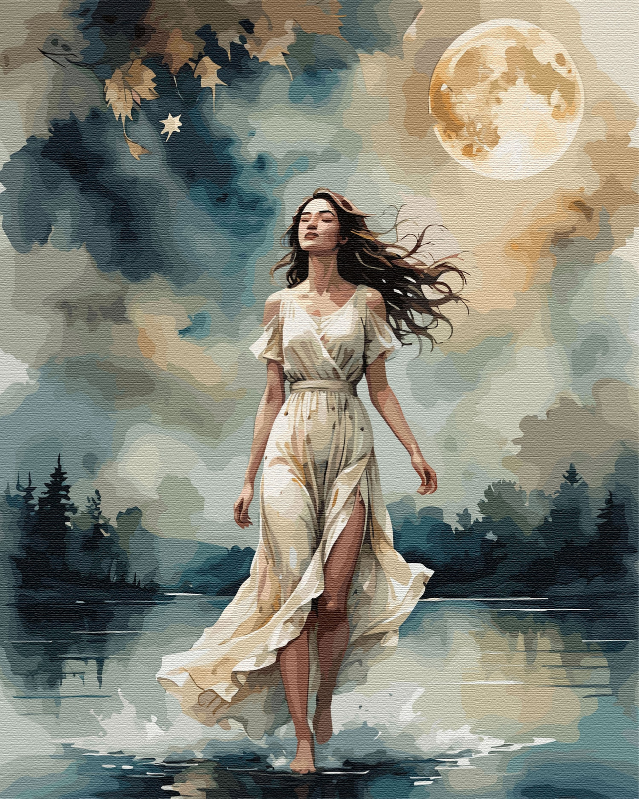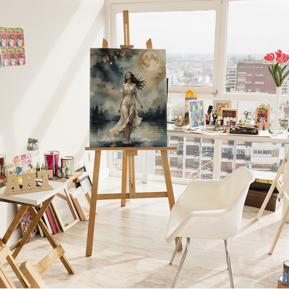 HINWEIS: Diese Seite betrifft das Malen-nach-Zahlen-Set „Eine Nachtwanderung im Mondlicht“, Größe 50 x 40 cm, AUF EINEM HOLZRAHMEN