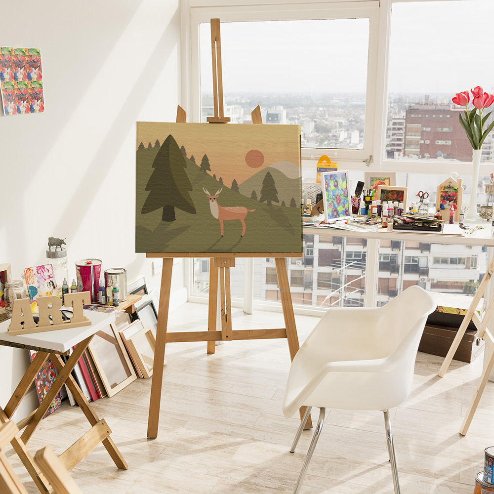 Malen-nach-Zahlen-Set Ein Waldhirsch in warmen Farben 50x40 cm auf Holzkeilrahmen