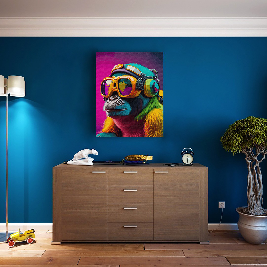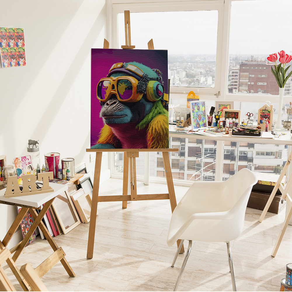 Malen-nach-Zahlen-Set Bunter Affe mit futuristischer Brille 50x40 cm auf Holzkeilrahmen