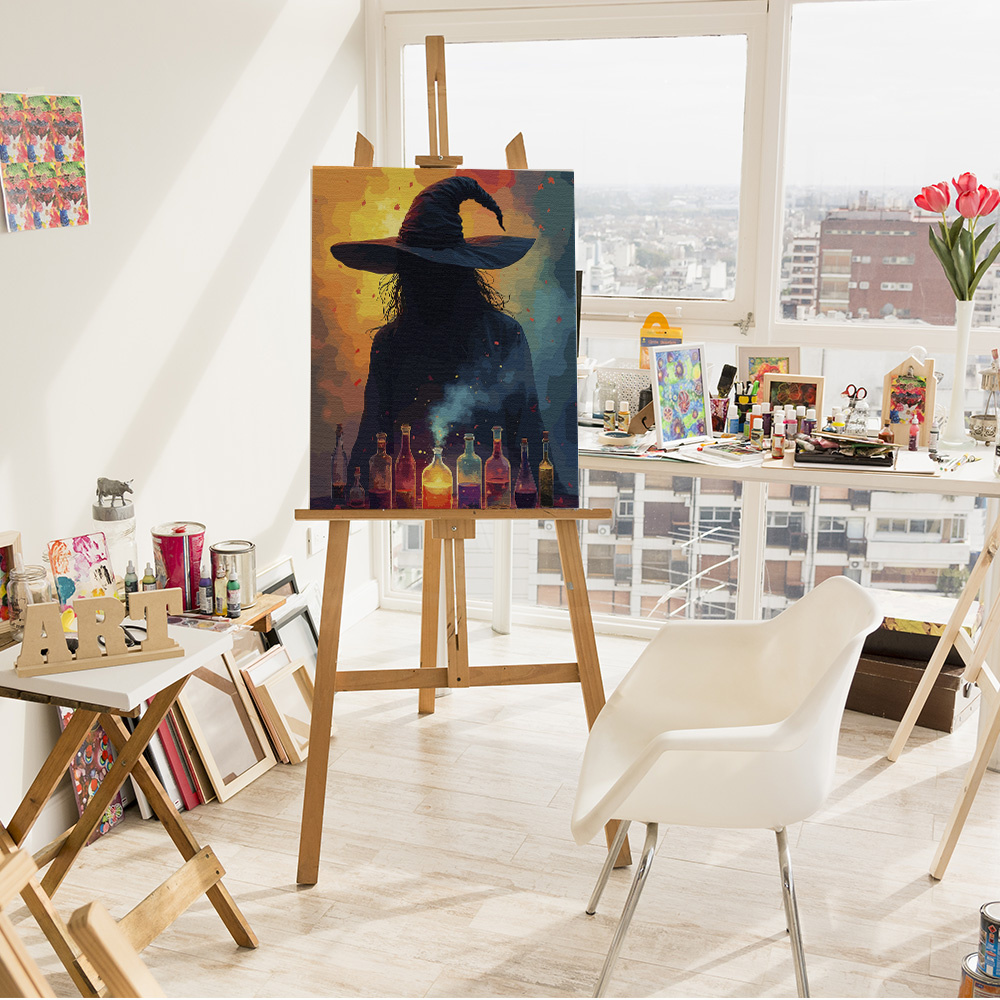 Malen-nach-Zahlen-Set Zauberin und Elixiere 50x40 cm auf Holzkeilrahmen