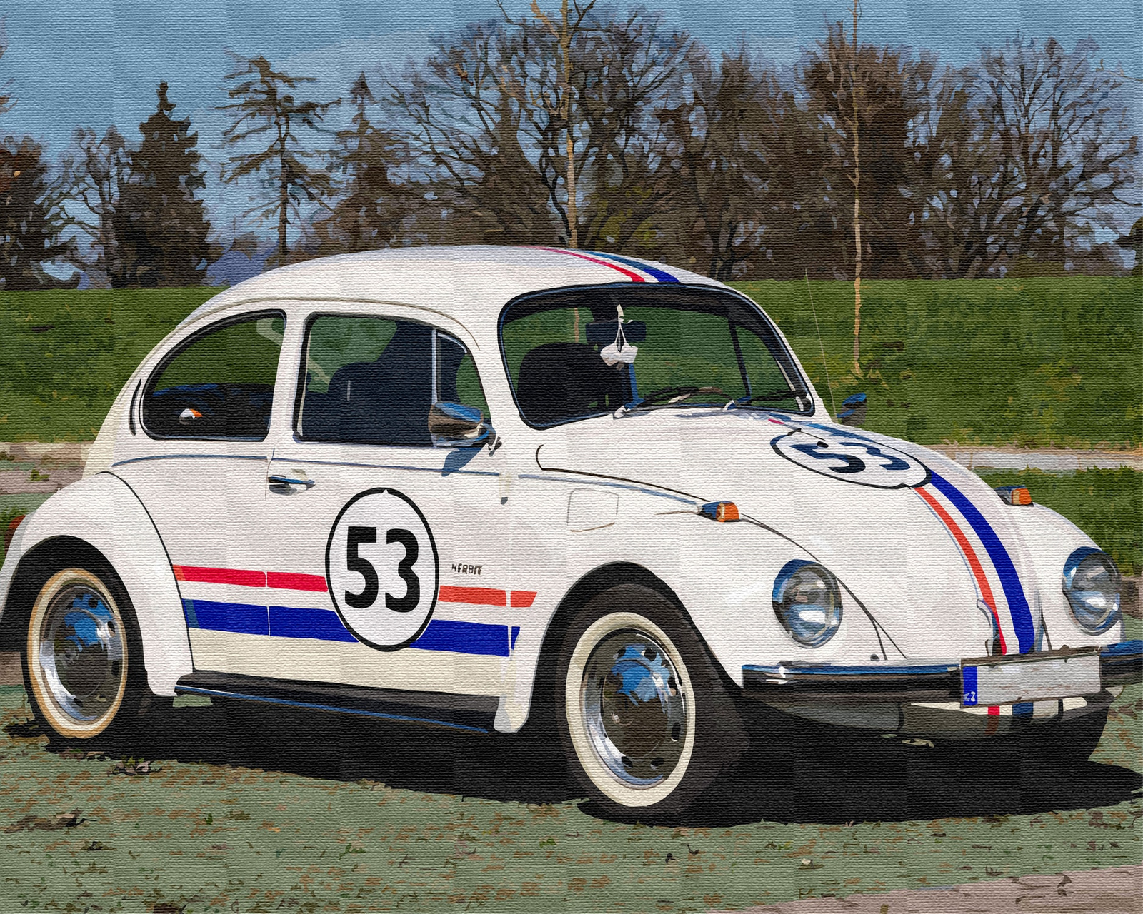 Malen nach Zahlen auf Keilrahmen – Weißer Buckliger mit der Nummer 53 50x40 cm Bild zum Ausmalen nach Zahlen
