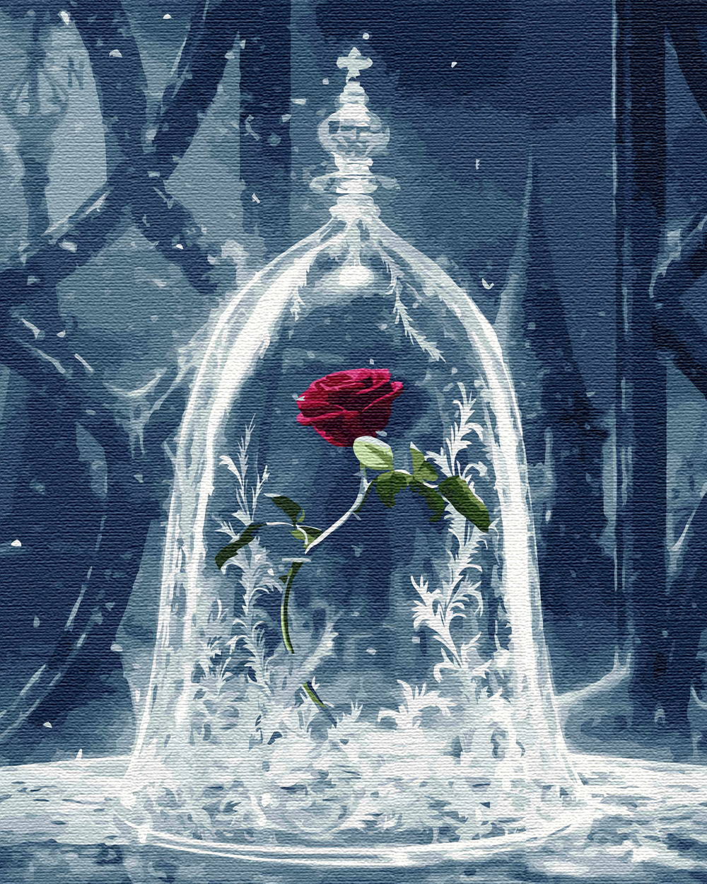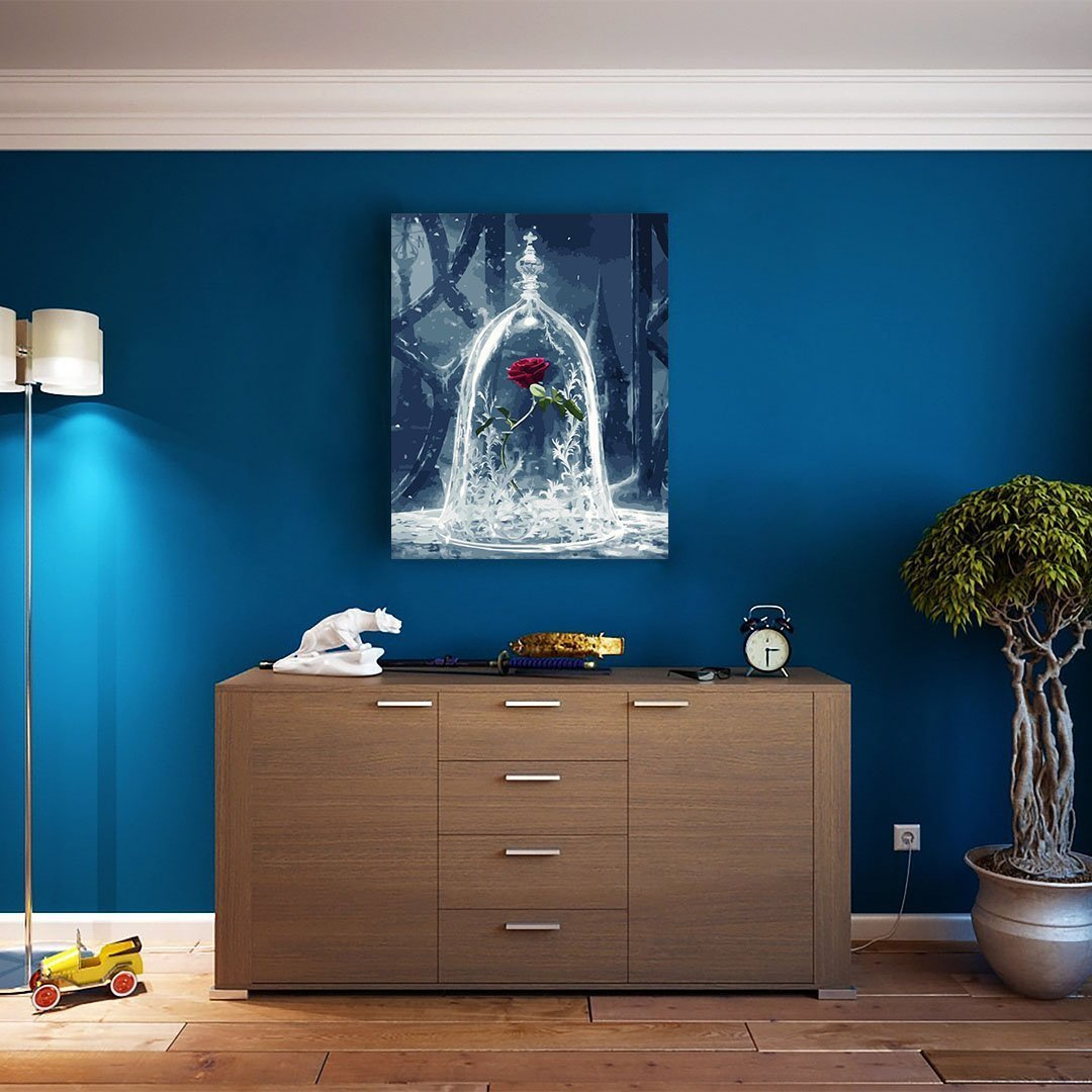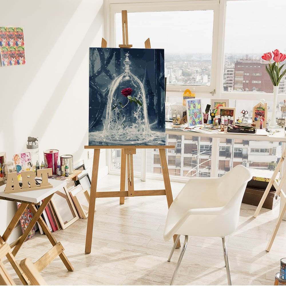 Malen nach Zahlen auf Keilrahmen – Verzauberte Rose – Die Schöne und das Biest 50x40 cm Bild zum Ausmalen nach Zahlen